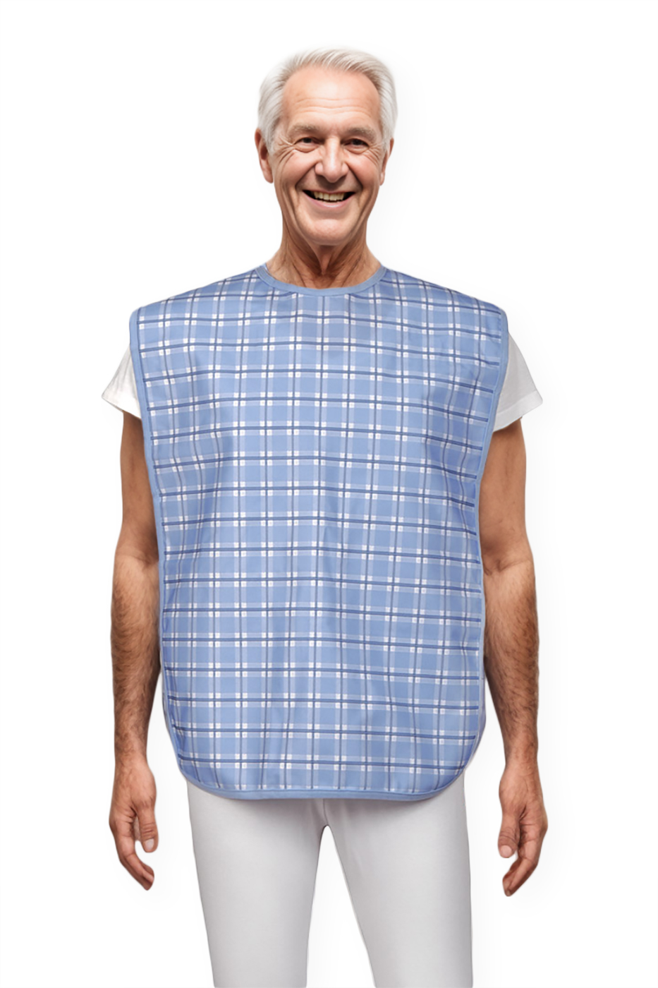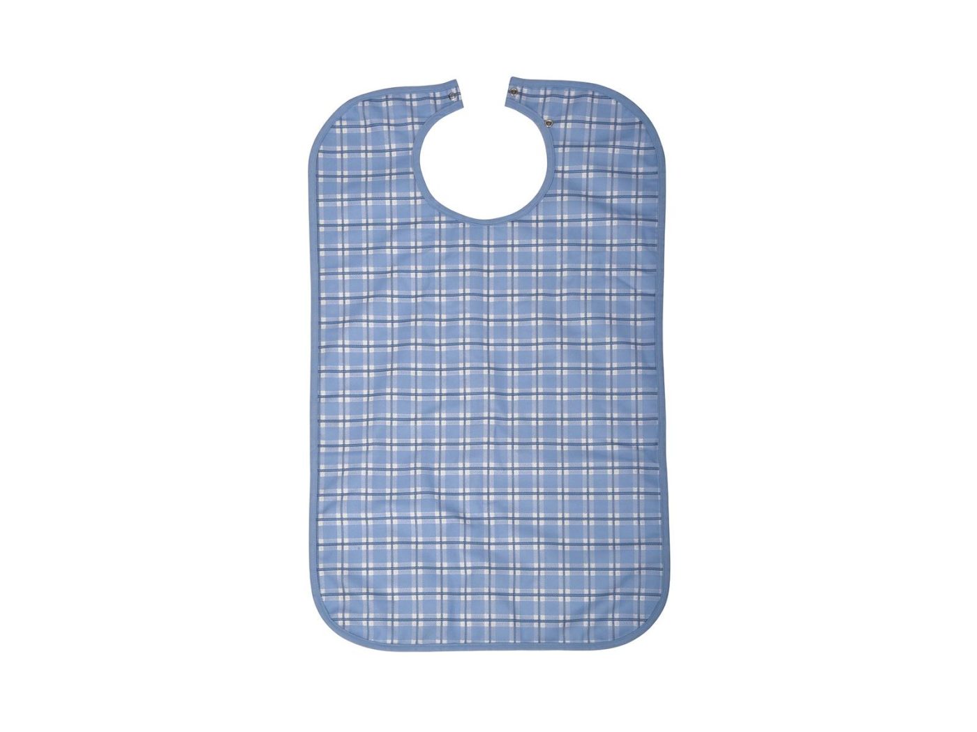 Bryndák pro dospělé a seniory, nepropustný 3-vrstvý s PU membránou a zapínáním na patenty za krkem výborně ochrání oděv před znečištěním, i proto že je dostatečně velký. Rozměr: 50 x 85 cm. Materiál: 100% polyester s PU membránou. Balení: 1 kus. Praní: na 60°C.