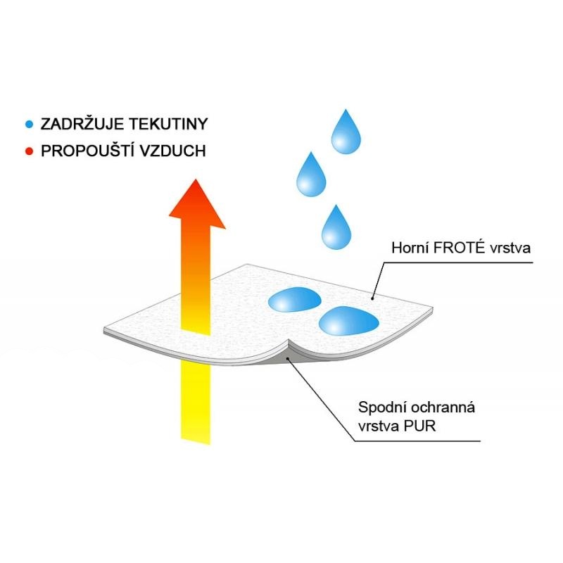 Chrániče matrací nepropustné jsou kvalitním českým výrobkem z naší dílny. Vrchní strana chrániče je vyrobena ze savého froté materiálu 130g/m2. Spodní materiál je nepropustný, ale prodyšný je 100% PU 70g/m2 (materiál celkově 200g/m2) , který chrání vaší matraci proti znečištění či dokonce poškození. Okraje chrániče jsou zpevněny bavlněnou lemovkou. Praní na 90°C. Rozměr: 90x200cm. Materiál: froté + PU zátěr, froté = bavlna / PES = 80% / 20% = 130g/m2, PU zátěr = 70g/m2, celkem 200g/m2.