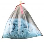 Jednorázové rozpustné pytle / vaky je zcela nový způsob řešení jak oddělit a skladovat špinavé, kontaminované prádlo před vypráním. Výhodou tohoto řešení je, že potencionálně kontaminované oblečení či prádlo nikdo nemusí chytat do rukou. Stačí když budou pytle naplněné přímo v pokojích či šatnách, kde se zatáhnou a převezou do prádelny. Plastové pytle jsou vyrobeny ze speciálního polyvinyalkoholového materiálu, který se ve styku s vodou za určité teploty rozpouští a je 100% biologicky odbouratelný, což je velká výhoda z hlediska recyklace, ale především šetření přírody proti nadměrnému zahlcování plasty. Materiál: polyvinylalkoholová fólie Rozměr: š: 71 cm x d: 99 cm. Obsah: 120 litrů. Barva: transparentní. Balení: 25 kusů role / 200 kusů v kartonu. Rozpustné při teplotě 45°C a více.