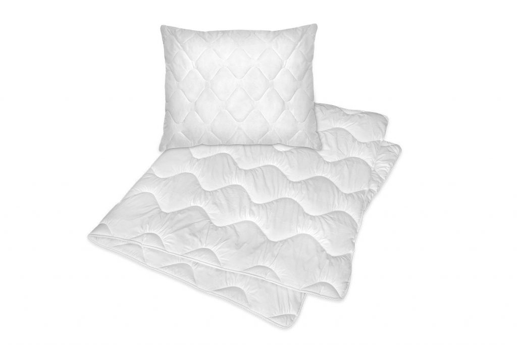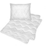 Set prošívané přikrývky a polštáře je vhodný pro celoroční použití. Prošívaná přikrývka je vzdušná a nadýchaná z příjemného a odolného materiálu, po okraji je zpevněná lemovkou, díky které snáší vyšší zátěž a je vhodná pro ubytovací zařízení. Přikrývka má díky výplni z dutého vlákna a složení z několika různých materiálů výborné tepelně izolační vlastnosti, čímž je dosažen příjemný pocit tepla. Možnost praní na 95°C zaručí dokonalou čistotu. Prošívaný polštář je vyroben z příjemného a odolného materiálu. Výrobek je složen z mikrovlákna, prošitého dutého vlákna a netkané textilie. Náplň polštáře je tvořena pružným kuličkovým vláknem, které si zachovává stálý tvar a zůstává nadýchané. Použité kvalitní materiály umožňují praní na 95°C. Materiál: přikrývka 1000g – prošité mikrovlákno, náplň z dutého vlákna, polštář – prošívané mikrovlákno, náplň z pružných kuličkových vláken. Rozměry: 135 x 200cm přikrývka, 70 x 90cm polštář.