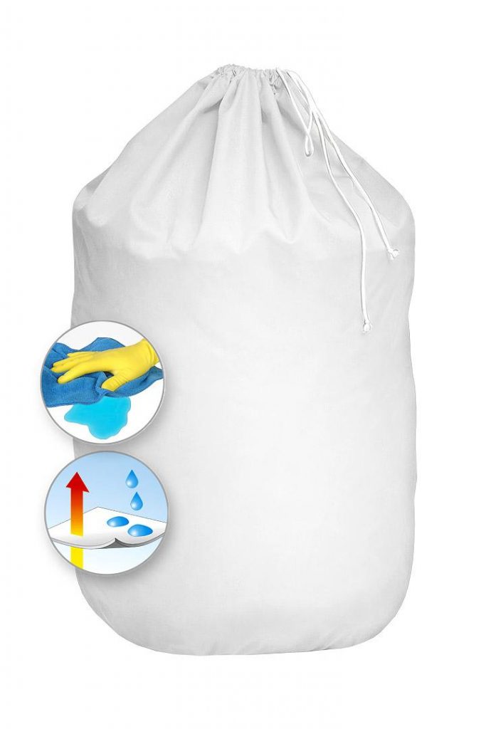 Pytel na prádlo nepropustný s polyuretanovým zátěrem je vhodný na sběr znečištěného a vlhkého prádla s možností praní na 95°C. Rozměr: 65 x 100cm.