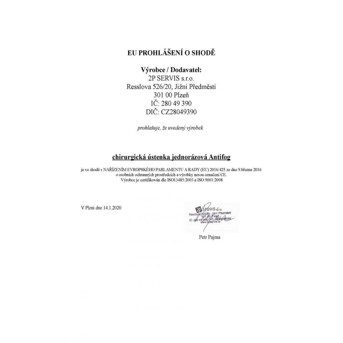 - vyhovuje klasifikaci EN14683:2019