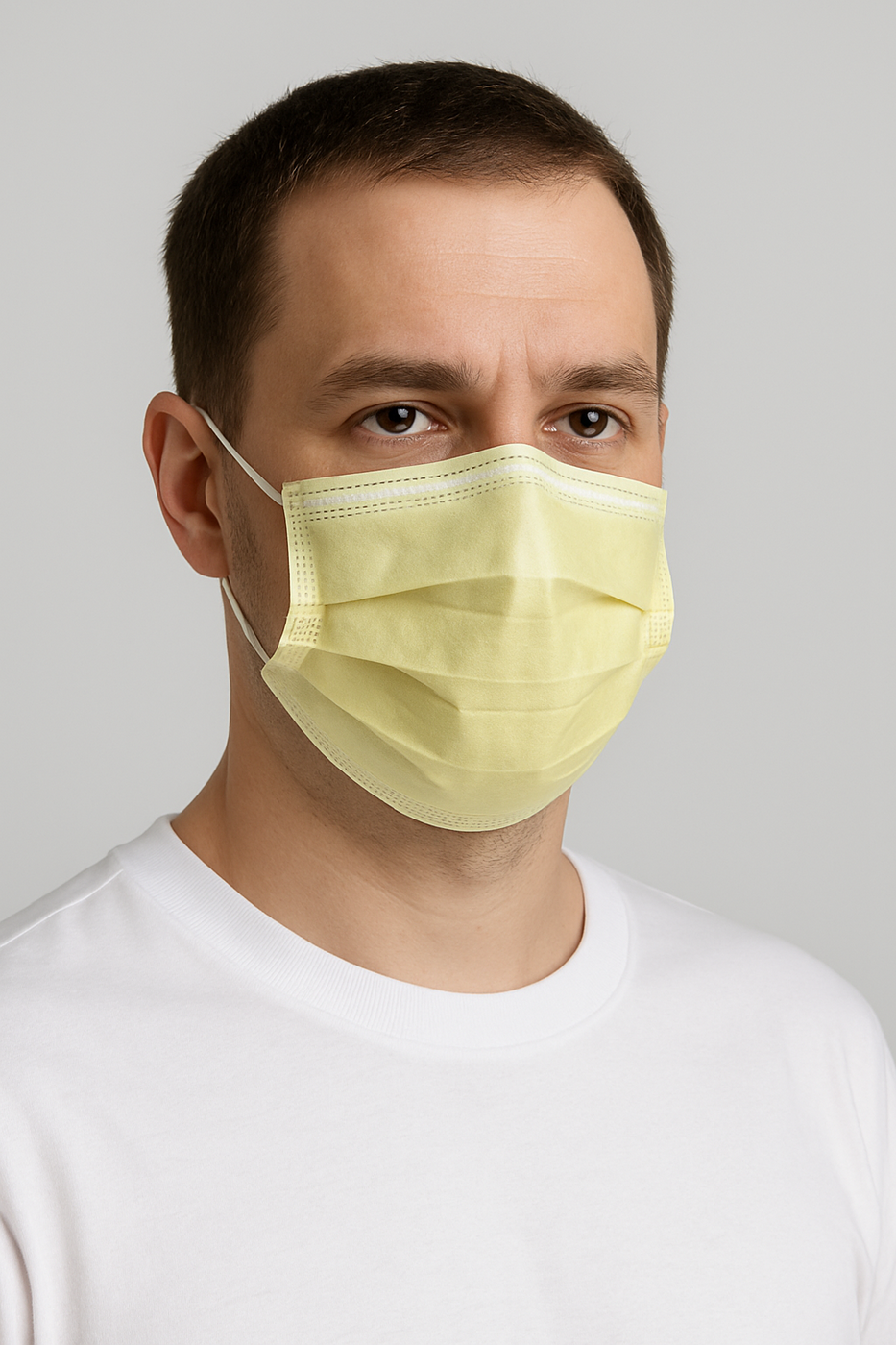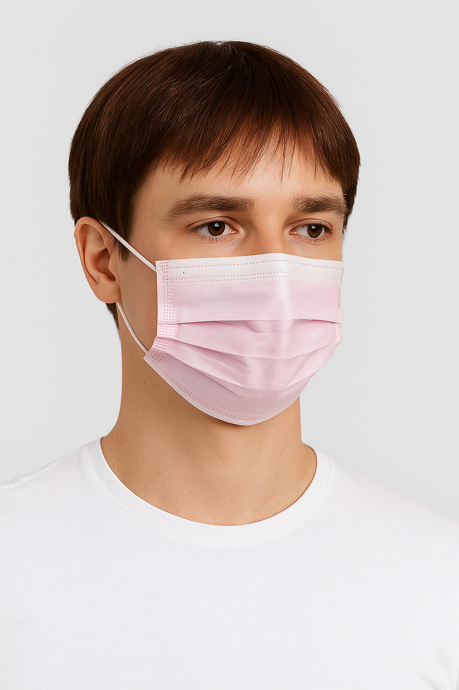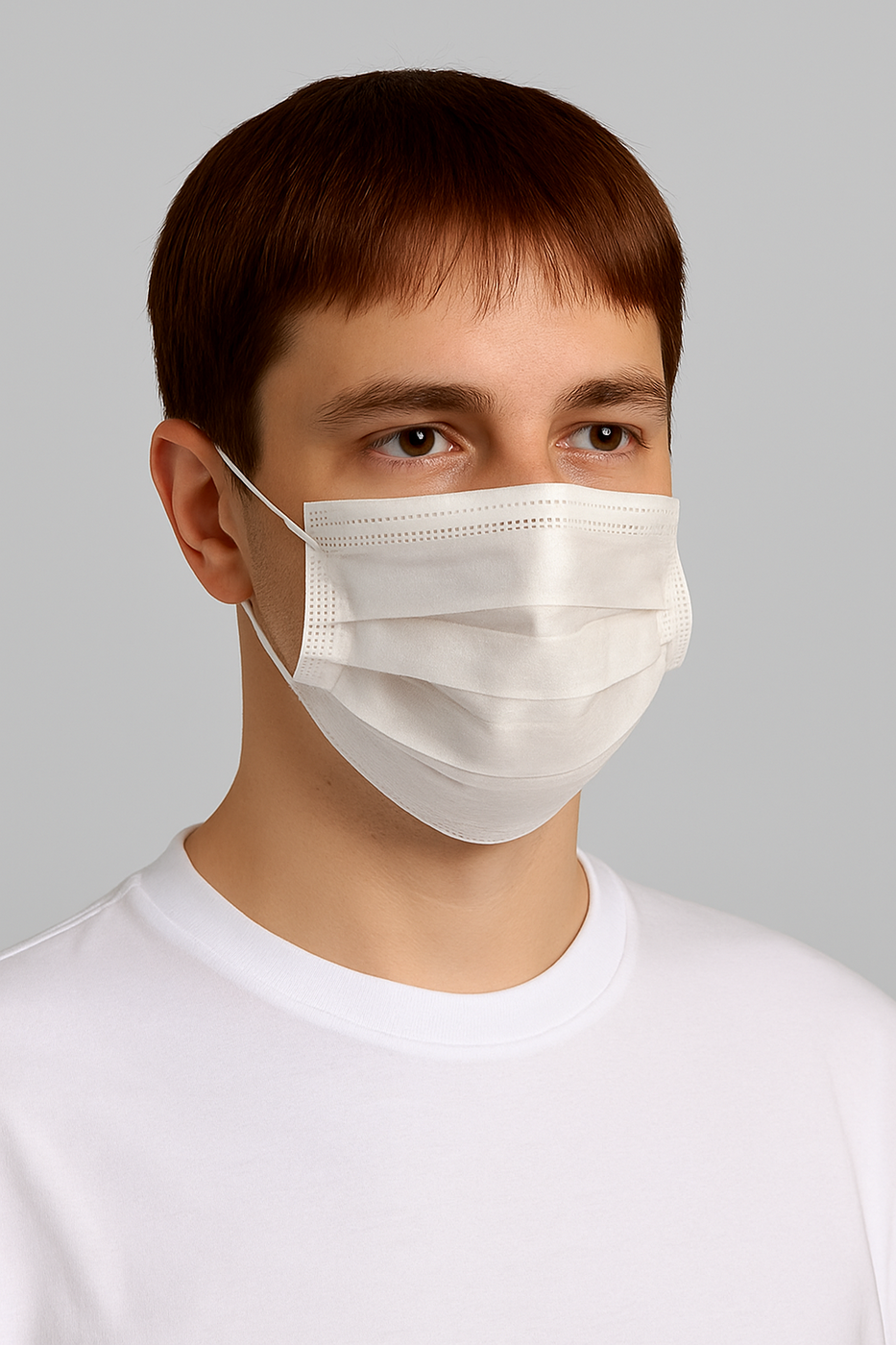 Jednorázové roušky 3 vrstvy s gumičkami za uši, kovová nosní výztuha, nesterilní, bez latexu. Zdravotnický prostředek třídy I dle EU 2017/745. Rozměr: 17,5 x 9 cm. Balení: 50 kusů krabička, 2000 kusů karton. Účinnost: 99% BFE. Materiál: netkaná textilie zpracovaná technologií spunbond.