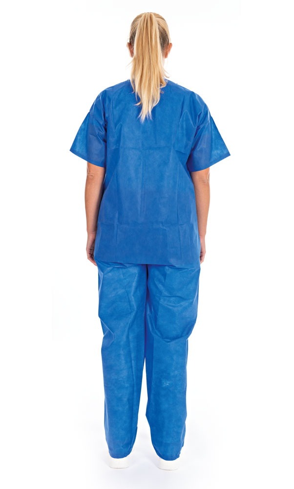 Jednorázový ošetřovatelský komplet SMS modrý je složen z kalhot se šňůrkou v pase a haleny se dvěma prostornými kapsami. Sada pro zdravotní péči z SMS materiálu obsahuje všechny nezbytné prvky pro bezpečnou a hygienickou práci. Vysoce kvalitní SMS materiál je lehký, prodyšný a odolný proti vlhkosti, což zajišťuje maximální komfort při nošení. Ideální pro nemocniční prostředí a zdravotnické zařízení, kde je kladen důraz na ochranu a čistotu. Obsah setu: 1x halena, 1x kalhoty. Balení: PE sáček. Hmotnost: 1 set přibližně 91,4g. Materiál: SMS.