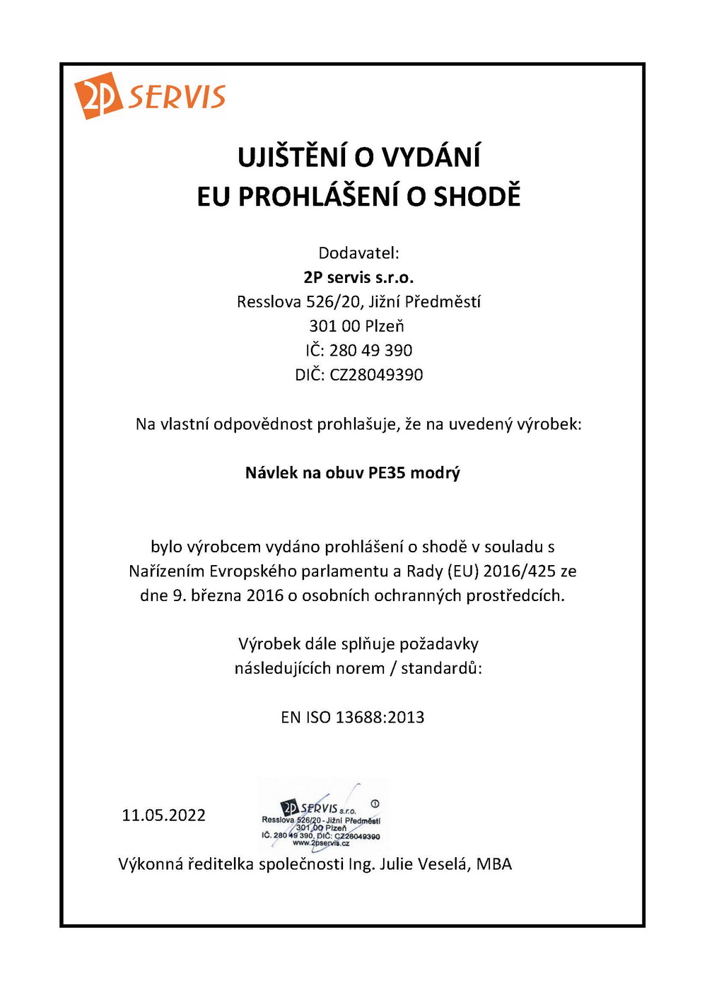 Ochranné návleky na boty a obuv jednorázové STANDARD CPE35 jsou vyrobeny z 100% polyetylenu / igelitu modré barvy, který je odolný a jsou tím pádem určeny pro vyšší zátěž. Výborně slouží především jako oCchrana podlahových povrchů před znečištěním či dokonce poškozením. Materiál: polyetylen 0,025mm 24g/m2. Hmotnost: 3,5g/ks. Rozměr: 15 x 41cm. Balení: 100 kusů, 2000 kusů v kartonu.