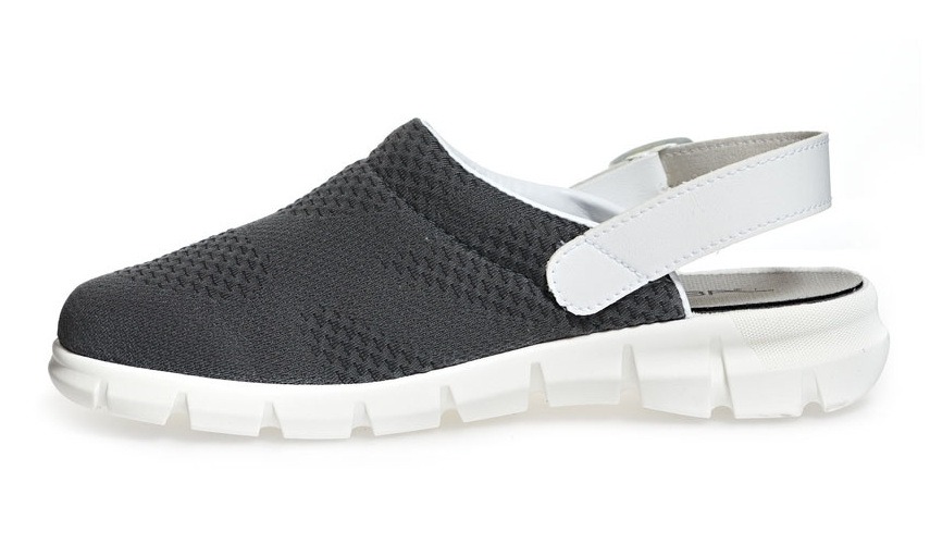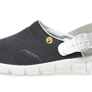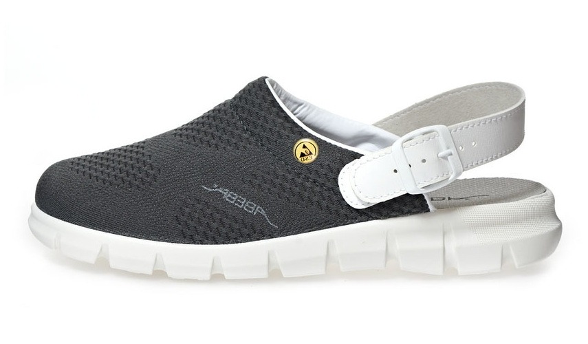Abeba Dynamic 37328 antistatické pantofle s protiskluzovou podešví SRC, s nastavitelným patní páskem, vyměnitelné stélky Active Comfort, chrání proti stříkající vodě. Sanitized úprava omezující tvorbu bakterií. Norma: CE EN ISO 20347: 2012 OB, A, E, FO, SRC. Materiál: podešev TPU protiskluzná SRC, svršek pletená textilie. Barva: antracitová.