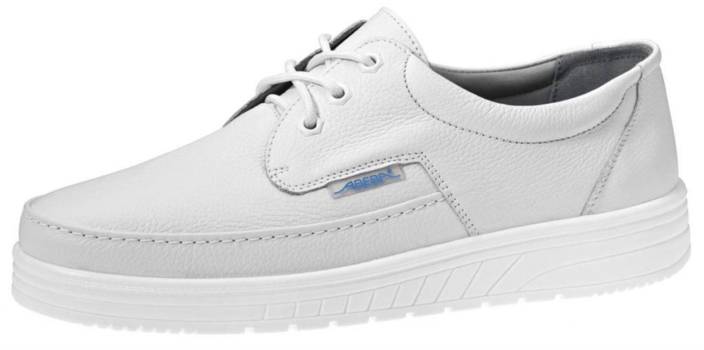 Abeba 2600 bílé jsou velmi lehké polobotky na PU měkčeném polštáři Air Cushion se zapínáním na šněrování. Obuv má vyměnitelné stélky, které mají úpravu Sanitized omezující tvorbu bakterií. Polobotky jsou s protiskluzovou certifikací SRA. Svršek obuvi je voděodolný, v patní části absorbér energie. Materiál: svršek hladká kůže, stélka z mikrovlákna, podešev PU vzduchově měkčená, podšívka mikrovlákno. Certifikace: EN ISO 20347:2012.