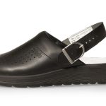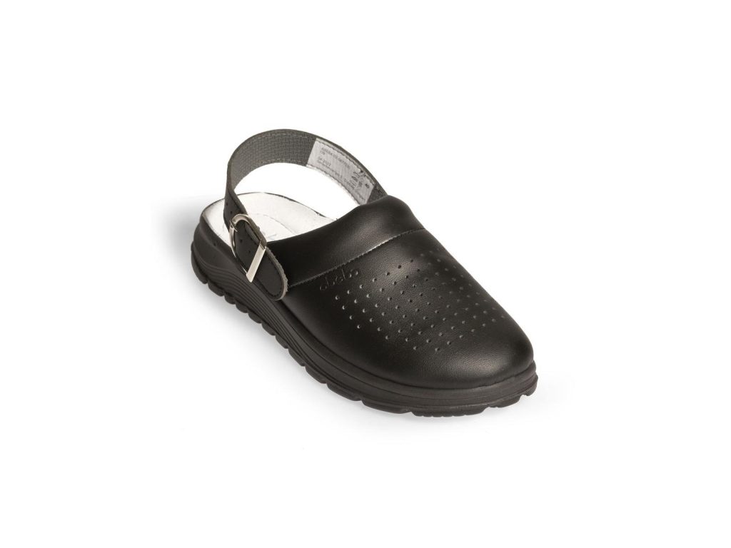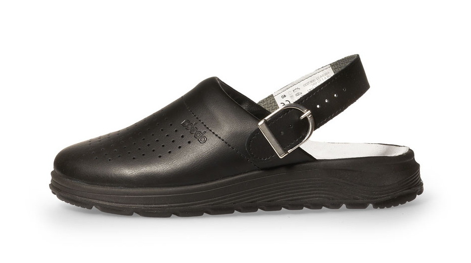 Pracovní pantofle obuv Abeba 87030 mají nastavitelný a překlopný patní pásek, protiskluzovou podešev s certifikátem SRC, která je odolná proti olejům a živočišným tukům, vrchní část obuvi je perforována pro lepší odvětrávání.