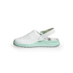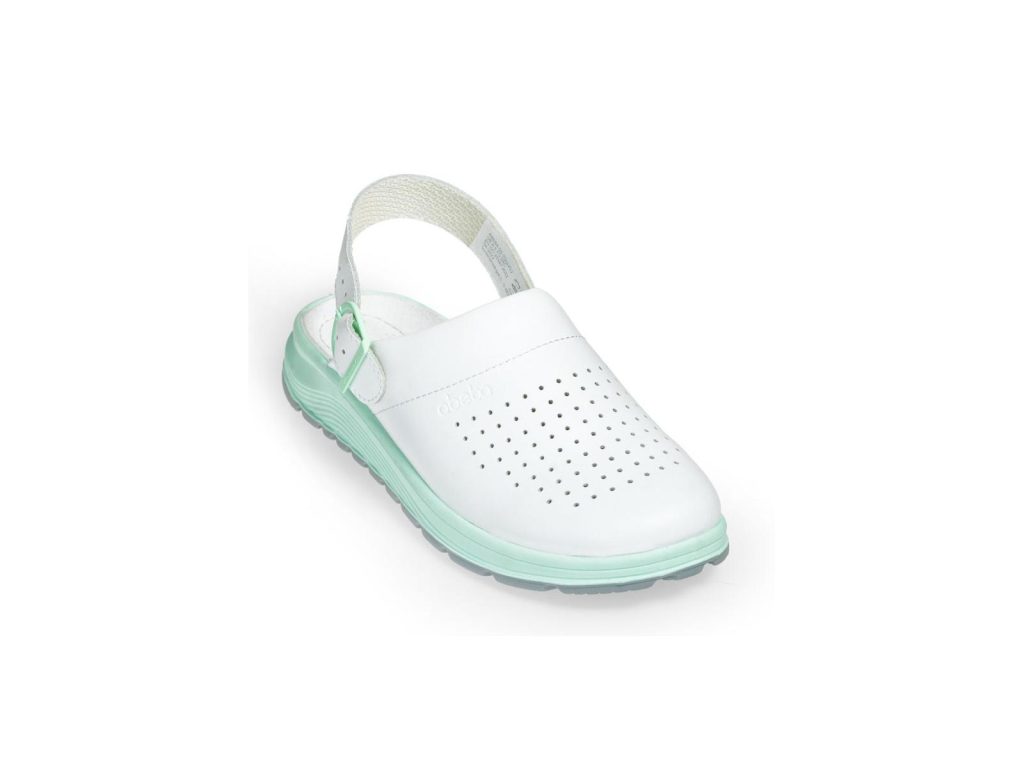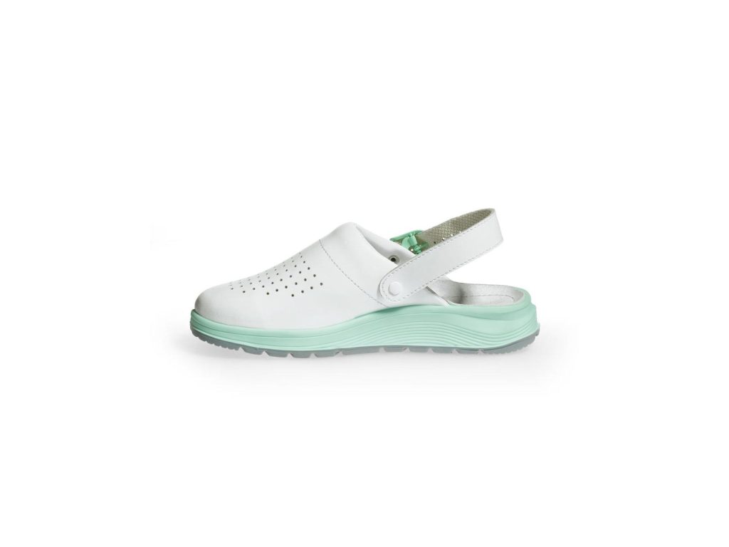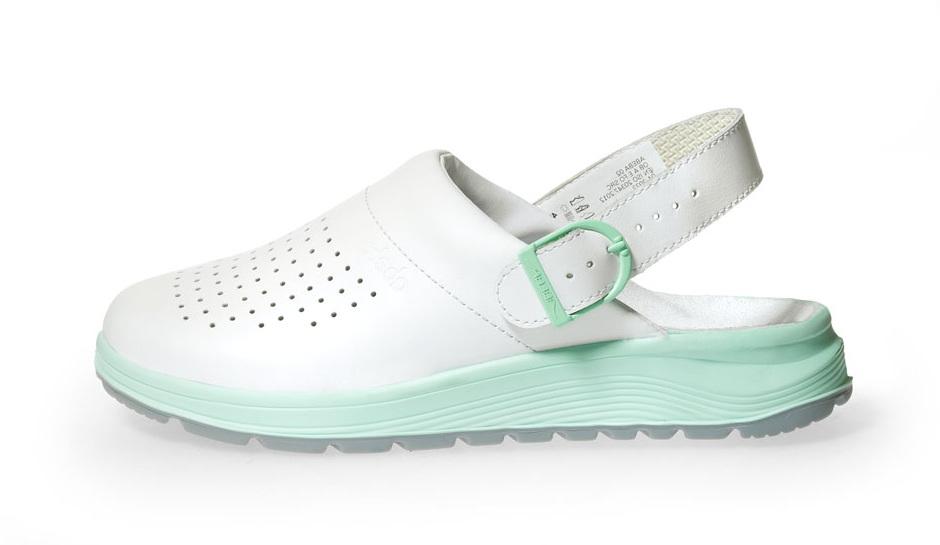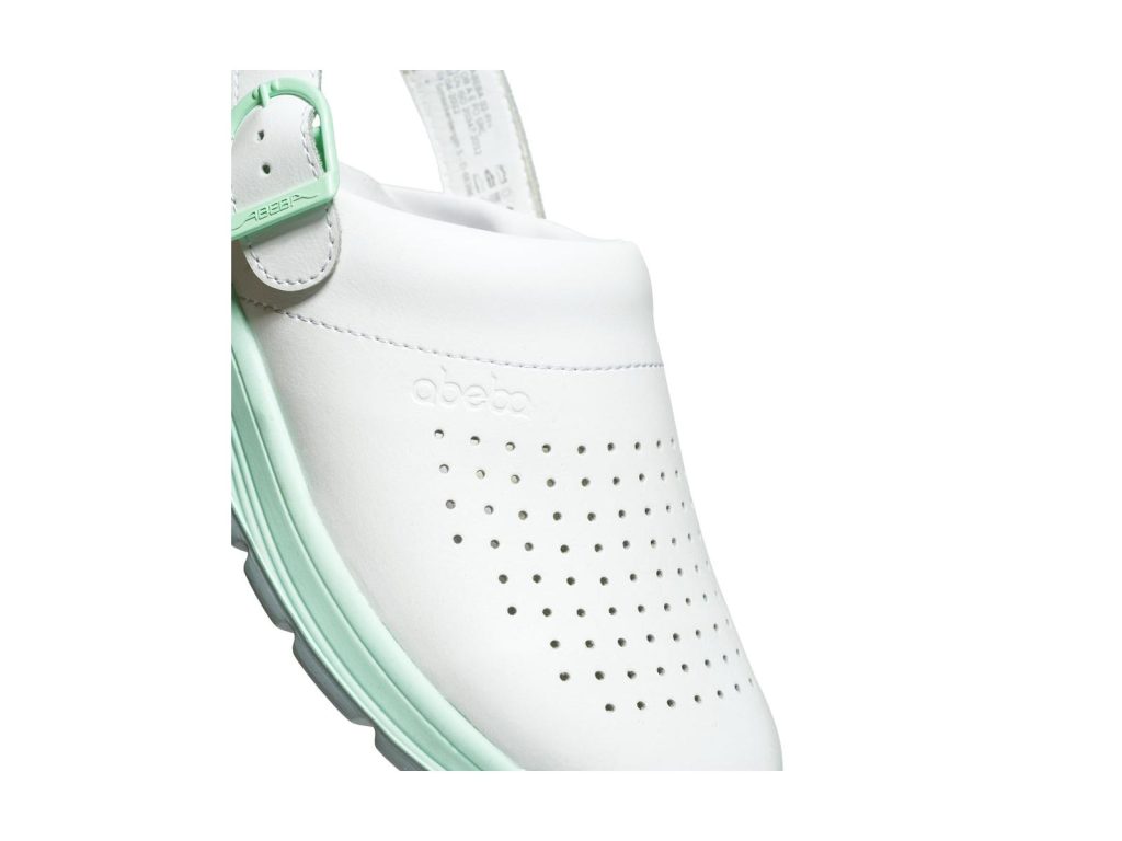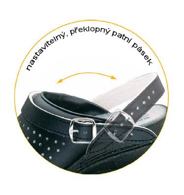 Zdravotní obuv Abeba 85080 je vyrobena z hladké usně s perforací, patní pásek je překlopný a délkově regulovatelný, protiskluzová podešev s certifikátem SRC je odolná proti olejům a živočišným tukům, EN ISO 20347:2012.
