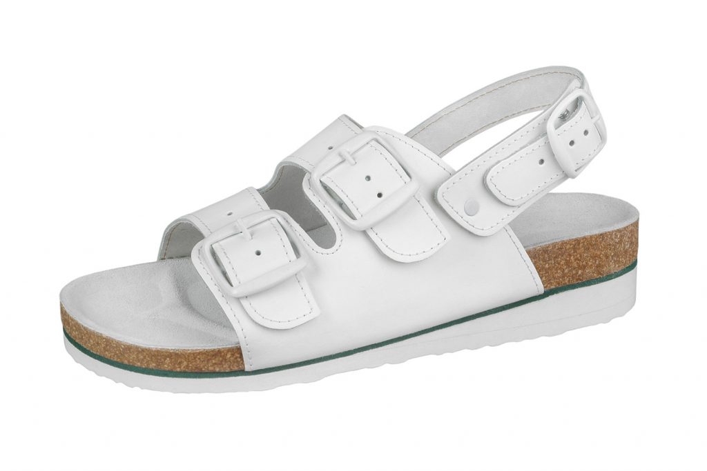 Zdravotní obuv dámská sandále S3K Extrém je velice známá a lehká pracovní obuv na novém typu korkové stélky, se svrškem obuvi a stélkou z přírodní usně, stélka s novou konstrukcí, dík které nepraská a je hloubkově měkčená, zelená mezipodešev tlumí nárazy při chůzi, podešev Extrém s protikluzným účinkem SRA.