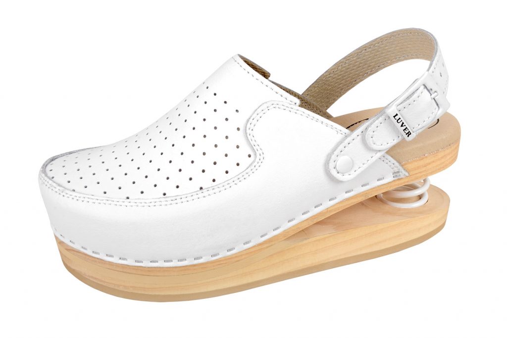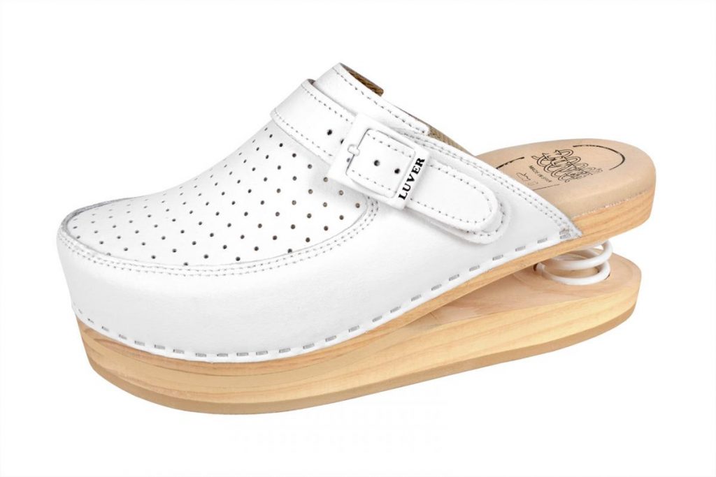 Zdravotní obuv Primavera Luver bílá s plnou špičkou a překlopným páskem, o které se dočtete v článku na Novinky.cz Moderní obuv s pružinou v patní části pro tlumení nárazů při chůzi svou jedinečnou konstrukcí zároveň pomáhá vyrovnávat váhu těla, zlepšuje správné držení těla, tlumí bolesti kloubů a páteře a podporuje krevní oběh. Vrchní část je vyráběna z přírodní usně. Anatomická stélka je vyrobena z kvalitní borovice paprsčité s vloženým pasivním tlumičem. Část pro chodidlo je potažena přírodní usní, pod kterou je paměťová latexová pěna, která se perfektně přizpůsobí anatomii Vašeho chodidla. Tento model má plnou špičku, která je pro lepší odvětrávání opatřena perforací a také překlopným patním páskem. Vyrobeno v EU.