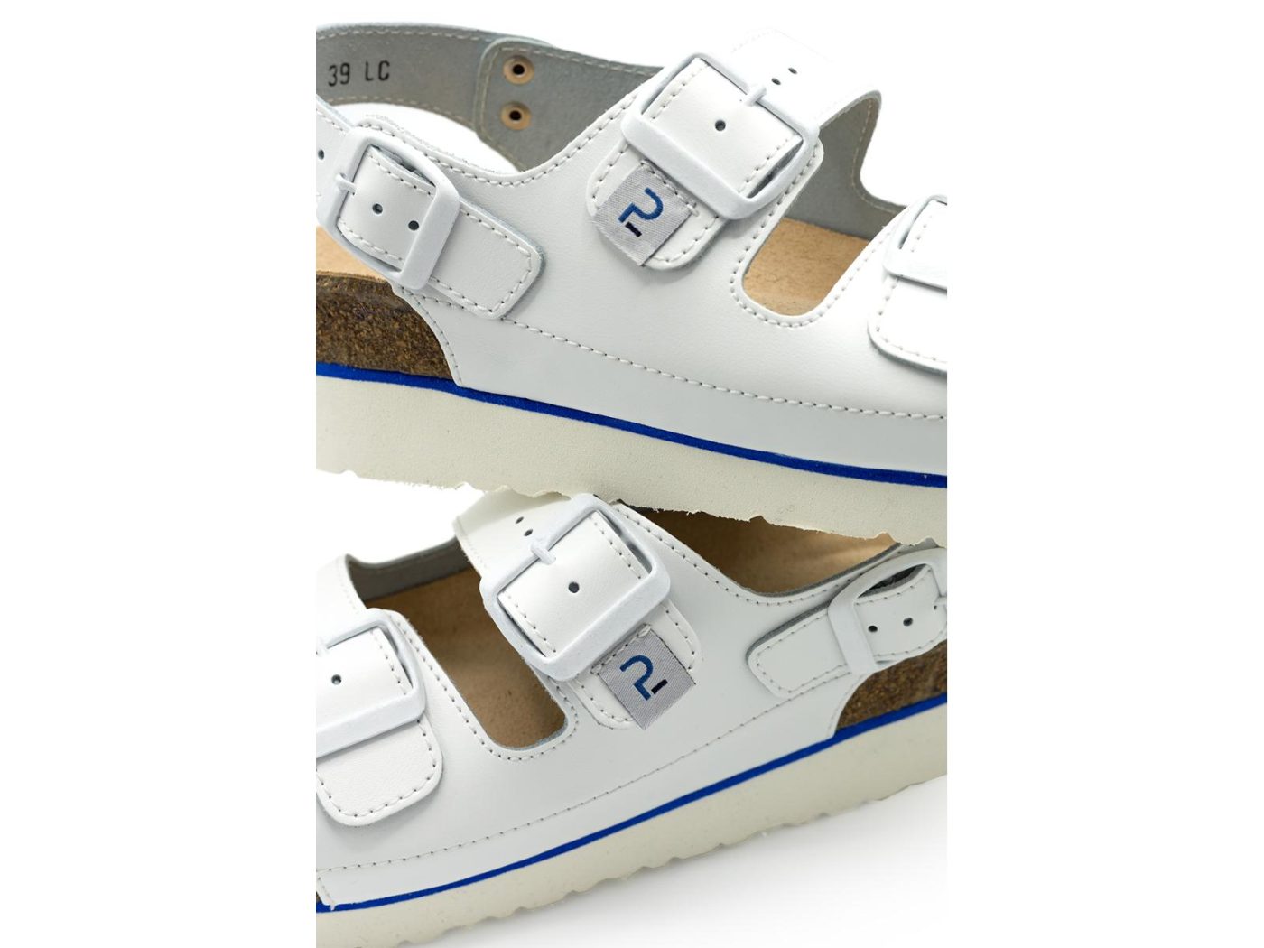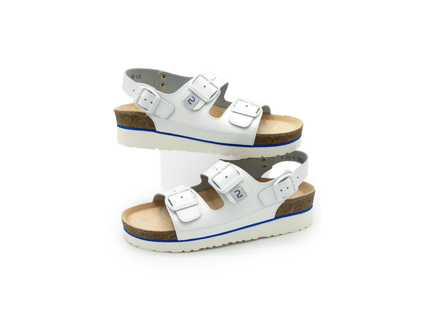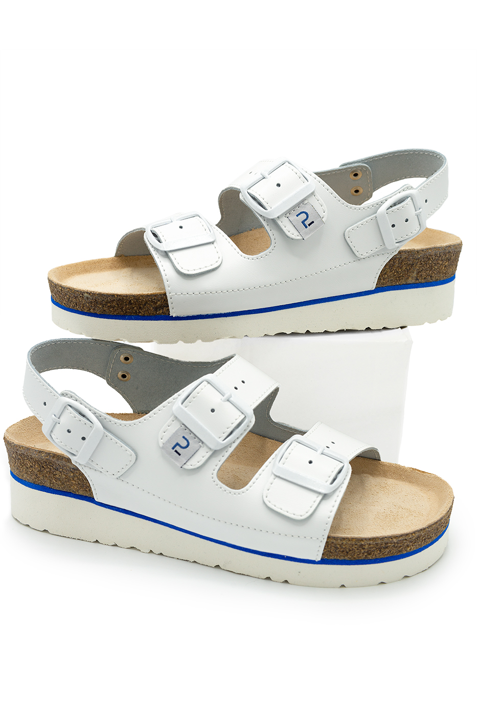 Zdravotnická pracovní obuv dámská S3K Blue jsou korkové pantofle se 2 nastavitelnými a koženými pásky přes nárt a 1 taktéž nastavitelným patním páskem. Ergonomická stélka splňuje požadavky na zdravotní obuv. Jelikož splňuje požadavky normy EN ISO 20347 je vhodná, jako pracovní obuv.