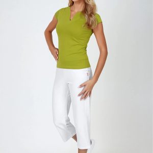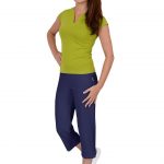 3/4 elastické dámské kalhoty Brazil v tmavě modré barvě, s vypasovaným střihem, z velmi příjemného a přitom zdravotně nezávadného směsového materiálu. Materiál: 92% bavlna, 8% elastan, 210g/m2. Praní: na 40°C.