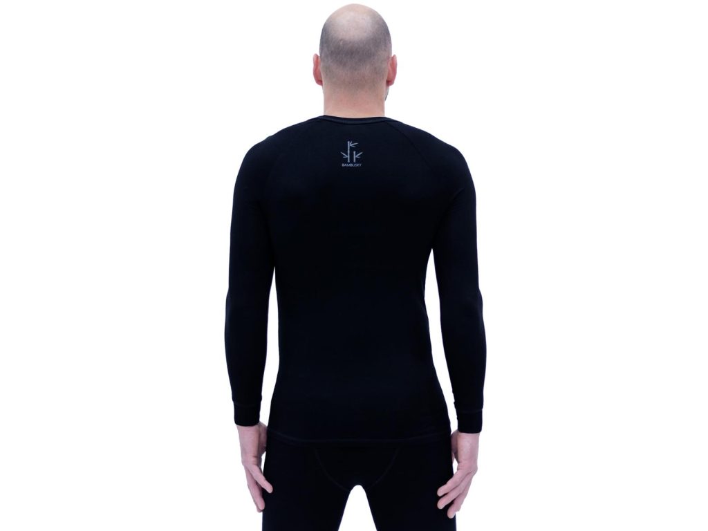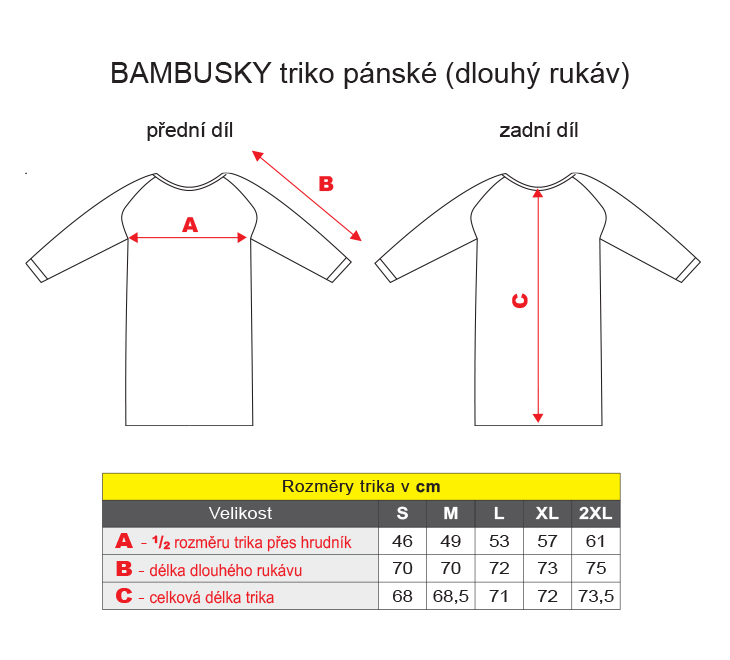 Bambusové tričko pánské Bambusky s dlouhými rukávy v černé barvě vyrábíme z jemného přírodního materiálu bambusové viskózy, které se přezdívá chytré vlákno. Bambusové oděvy jsou hebky měkké, prodyšné a k pokožce velmi příjemné. Bambusové oblečení má navíc antibakteriální vlastnosti díky tomu, že jsou bambusová vlákna přirozeně rezistentní proti plísním i bakteriím. Bambusové oblečení má navíc termoregulační schopnost, v létě chladí a v zimě hřeje. V bambusovém oblečení příjemně voníte celý den – bambusová vlákna obsahují přírodní složky, které nedovolí průniku a následnému usazování potu či jiným nepříjemným pachům ve struktuře tkaniny. Materiál: 95% bambusová viskóza 5% bavlna, 210g/m2. Praní: na 30°C.