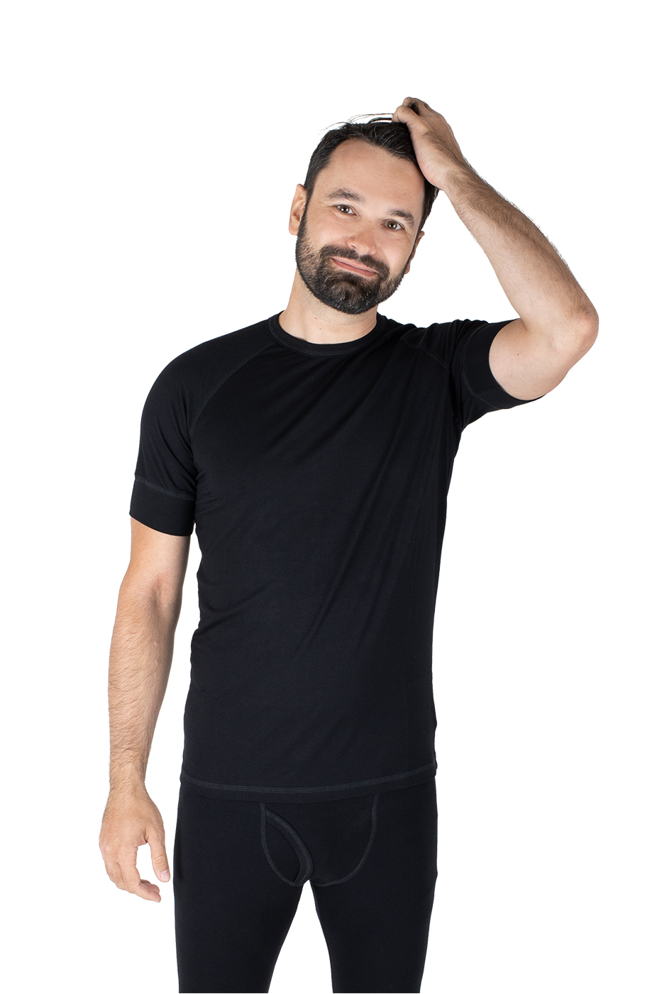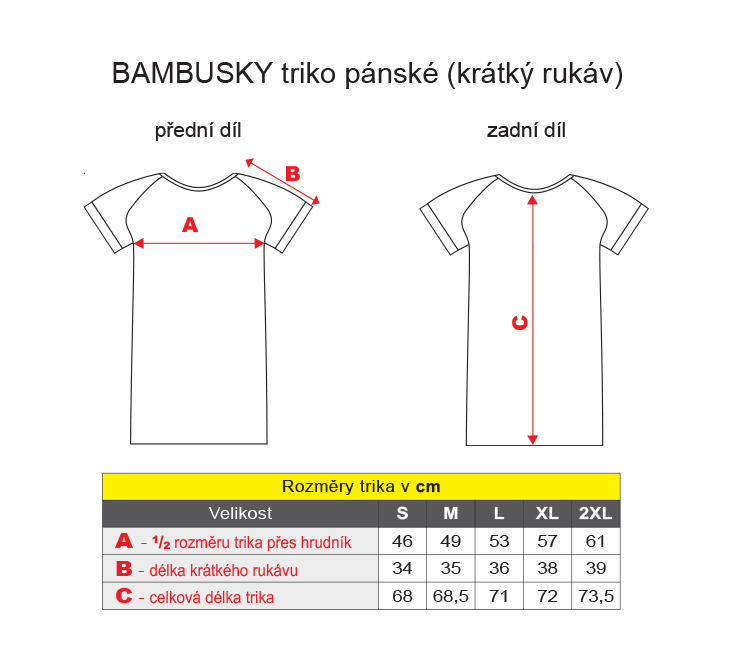Bambusové tričko pánské Bambusky s krátkými rukávy v černé barvě vyrábíme z jemného přírodního materiálu bambusové viskózy, které se přezdívá chytré vlákno. Bambusové oděvy jsou hebky měkké, prodyšné a k pokožce velmi příjemné. Bambusové oblečení má navíc antibakteriální vlastnosti díky tomu, že jsou bambusová vlákna přirozeně rezistentní proti plísním i bakteriím. Bambusové oblečení má navíc termoregulační schopnost, v létě chladí a v zimě hřeje. V bambusovém oblečení příjemně voníte celý den – bambusová vlákna obsahují přírodní složky, které nedovolí průniku a následnému usazování potu či jiným nepříjemným pachům ve struktuře tkaniny. Materiál: 95% bambusová viskóza 5% bavlna, 210g/m2. Praní: na 30°C.