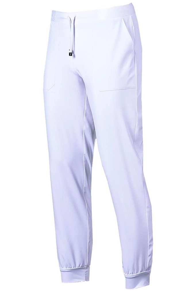 Bílé kalhoty Uni Jogger mikrovlákno mají v pase gumu a praktickou stahovací šňůrku a v zadní části kapsičku, další 2 kapsy jsou na bocích. Kalhoty jsou pohodlné a nebudou vás omezovat v pohybu. Jistě také oceníte snadnou údržbu bez nutnosti žehlení. Materiál: 95% PES 5% elastan mikrovlákno 360 170g/m2. Praní: na 30°C.