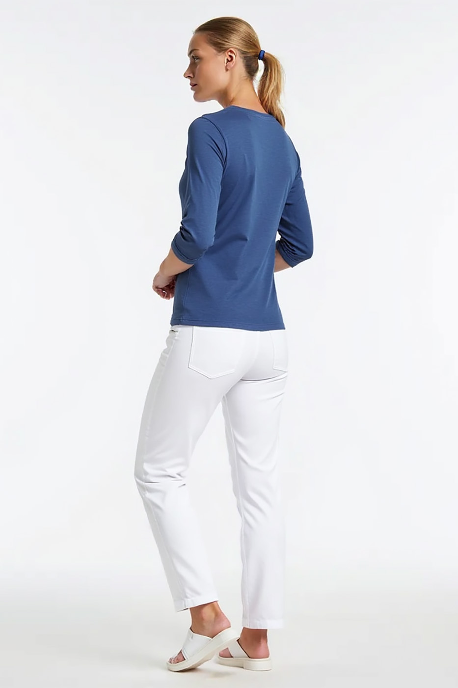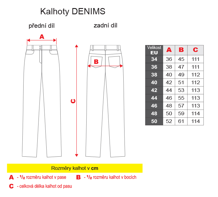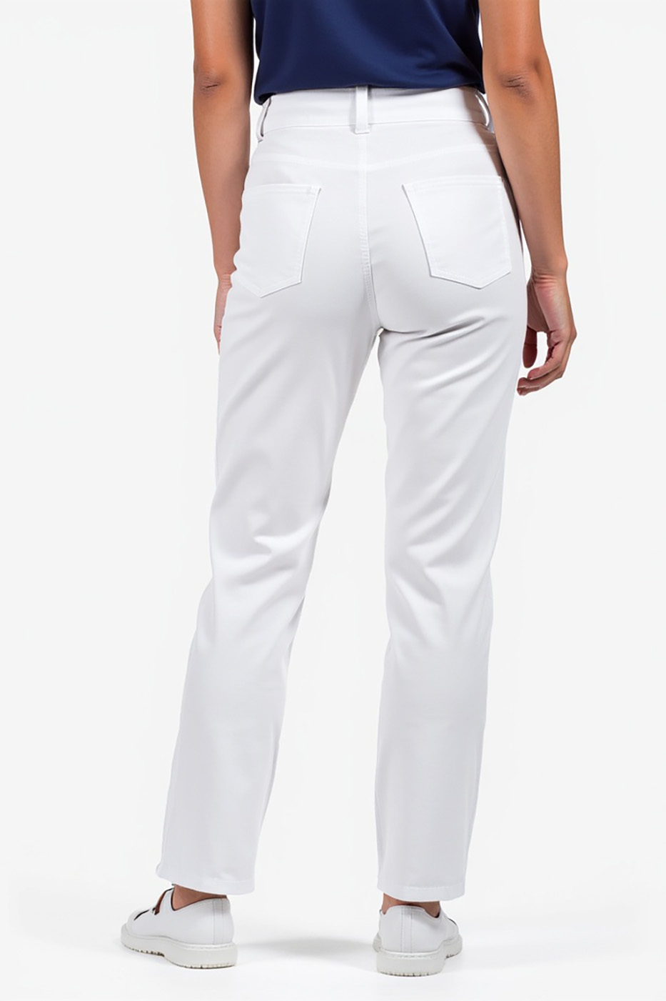 Bílé zdravotní kalhoty Denims dámské elegantního džínového střihu s rovnými nohavicemi a klasickým předním zapínáním na zip. Materiál: 97% bavlna, 3% elastan, 200g/m2.