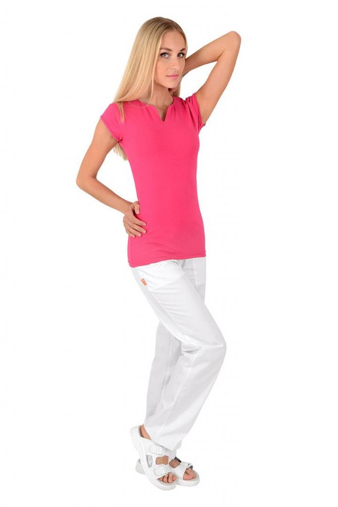 Dámská trička s krátkým rukávem Lara v atraktivní jahodové barvě mají lehce vypasovaný střih s extra krátkými rukávy a moderním výstřihem vyrábíme z jemného a zdravotně nezávadného materiálu s obsahem elastanu. Praní na 40°C. Materiál: 92% bavlna, 8% elastan, 210g/m2.