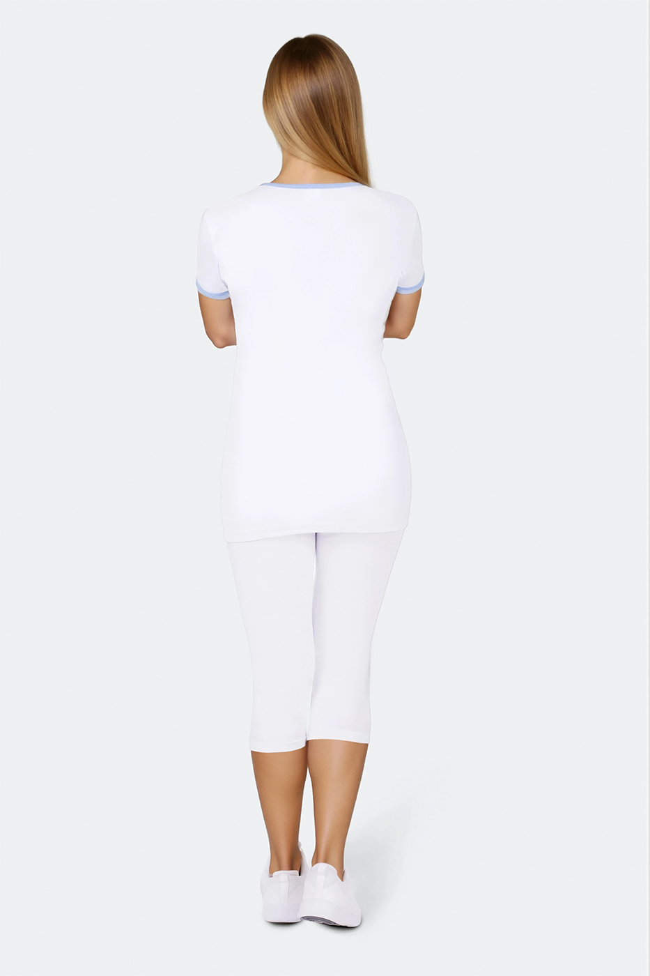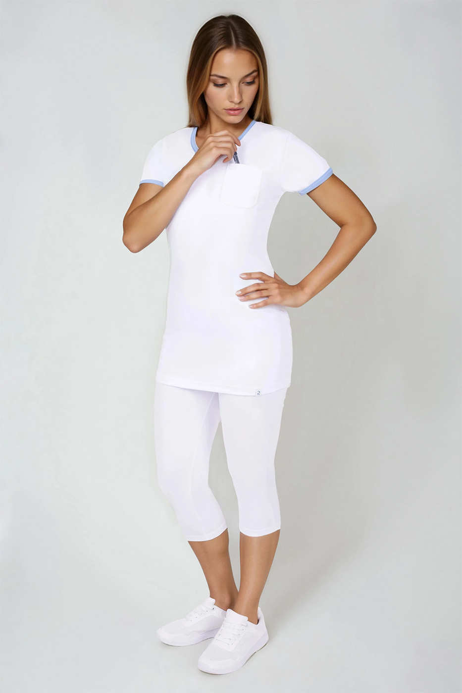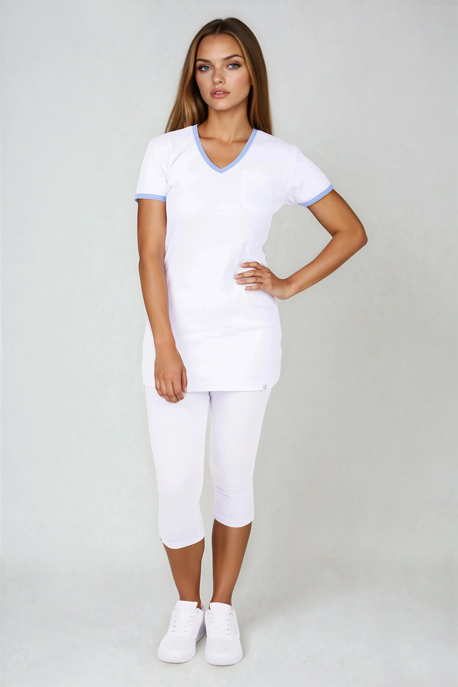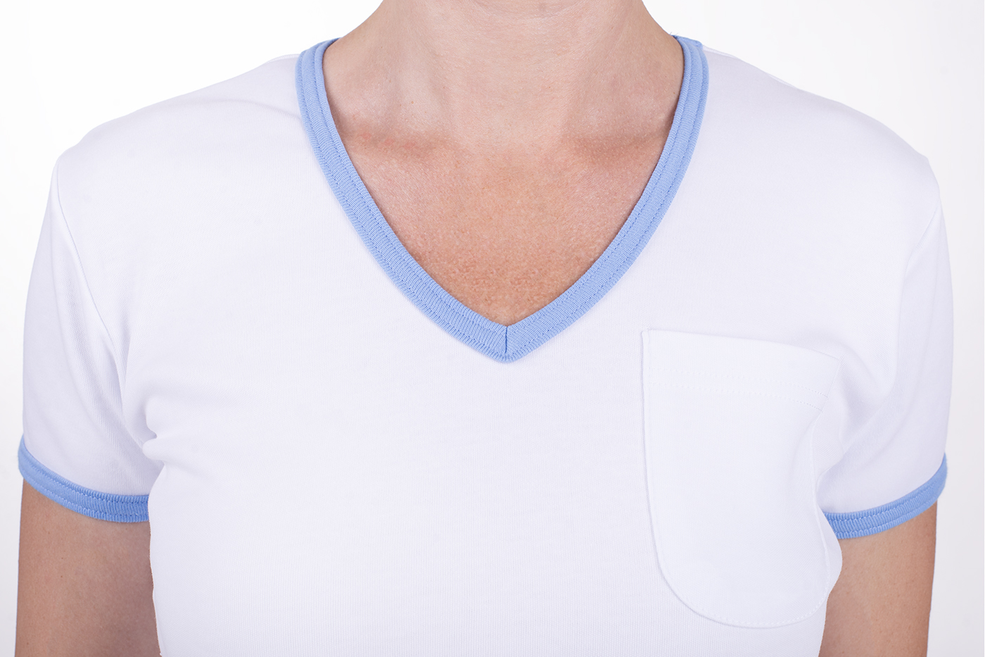 Dámské tričko Vito Duo s krátkým rukávem, lehce tvarovaným střihem, decentní náprsní kapsičkou, barevným zdobením na rukávech a kolem výstřihu do V. Materiál trika je velmi příjemný a zdravotně nezávadný.