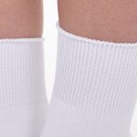 Dámské bílé ponožky Clasa s převažujícím podílem bavlněného materiálu a s obsahem polypropylenu, který má antialergické a antibakteriální vlastnosti. Materiál: 80% bavlna, 17% polypropylen, 3% gumy v lemu.