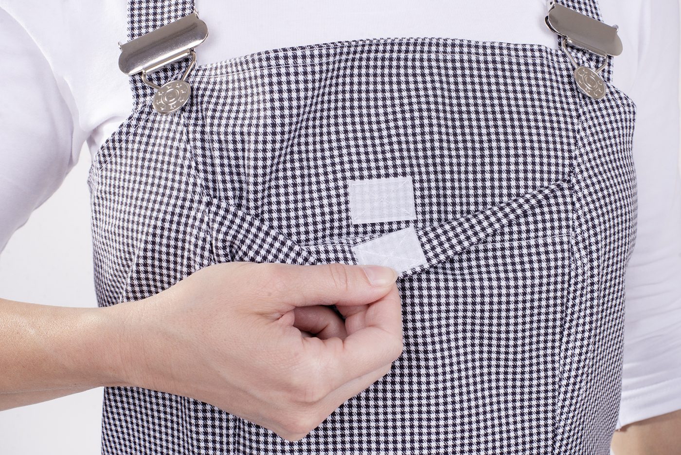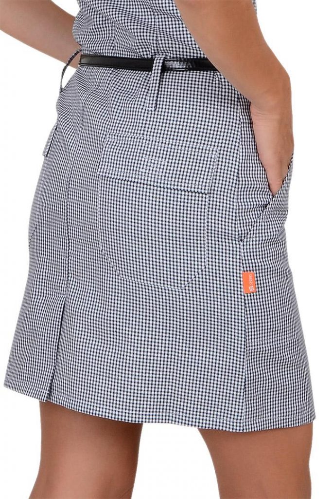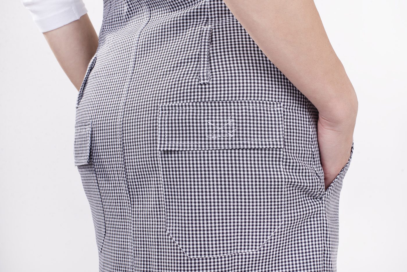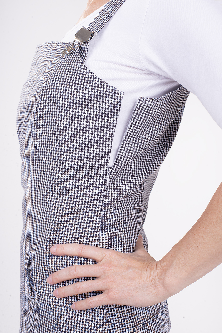 Dámské pracovní šaty Toffi pepito se sportovním vzhledem a ozdobným dvojitým štepováním, sukně je mírně rozšířená se zapínáním na zdrhovadlo v bočním švu, šaty mají 5 kapes a ozdobné přezky. Součástí dodávky není pásek. Materiál: 100% bavlna, sanfor., merc. 200g/m2. Praní: na 60°C.