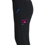 Dámské teplákové kalhoty Daily moderního střihu a pohodlného materiálu v černé barvě, žebrovaný pas se skrytou šňůrkou, 7 praktyckých kapes, lem nohavic se zadní elastickou manžetou. Materiál: 73% polyester + 22% umělé hedvábí + 5% spandex. Praní: na 30°C.