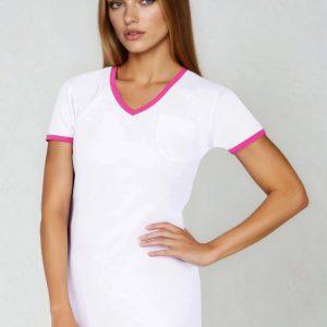 Dámské triko Vito Duo s krátkým rukávem a lehce tvarovaným střihem šijeme z velmi příjemného a zdravotně nezávadného materiálu.