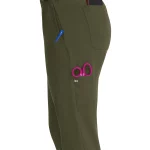 Elastické kalhoty dámské Daily moderního střihu a pohodlného materiálu v olivové barvě, žebrovaný pas se skrytou šňůrkou, 7 praktyckých kapes, lem nohavic se zadní elastickou manžetou. Materiál: 73% polyester + 22% umělé hedvábí + 5% spandex. Praní: na 30°C.