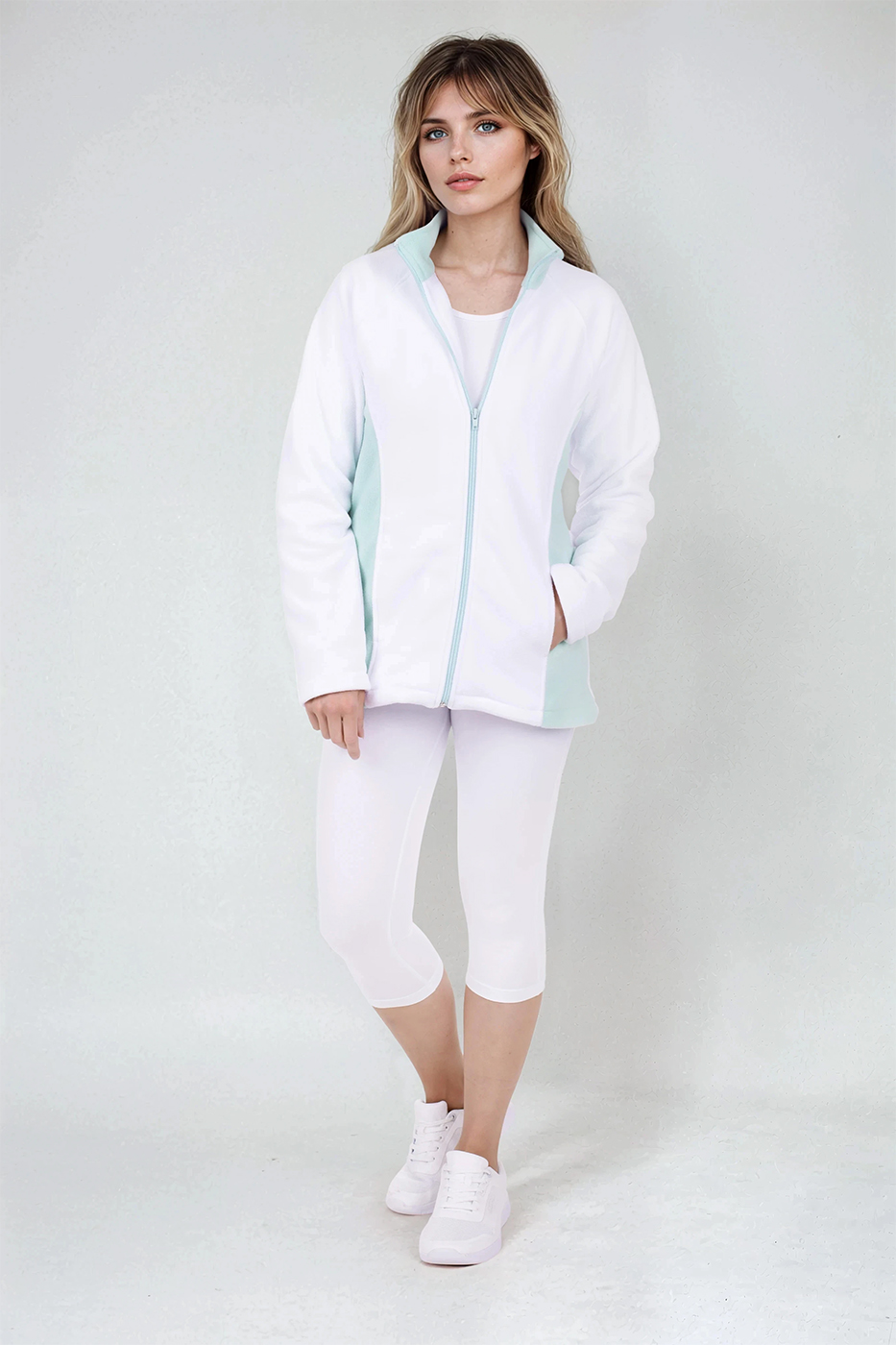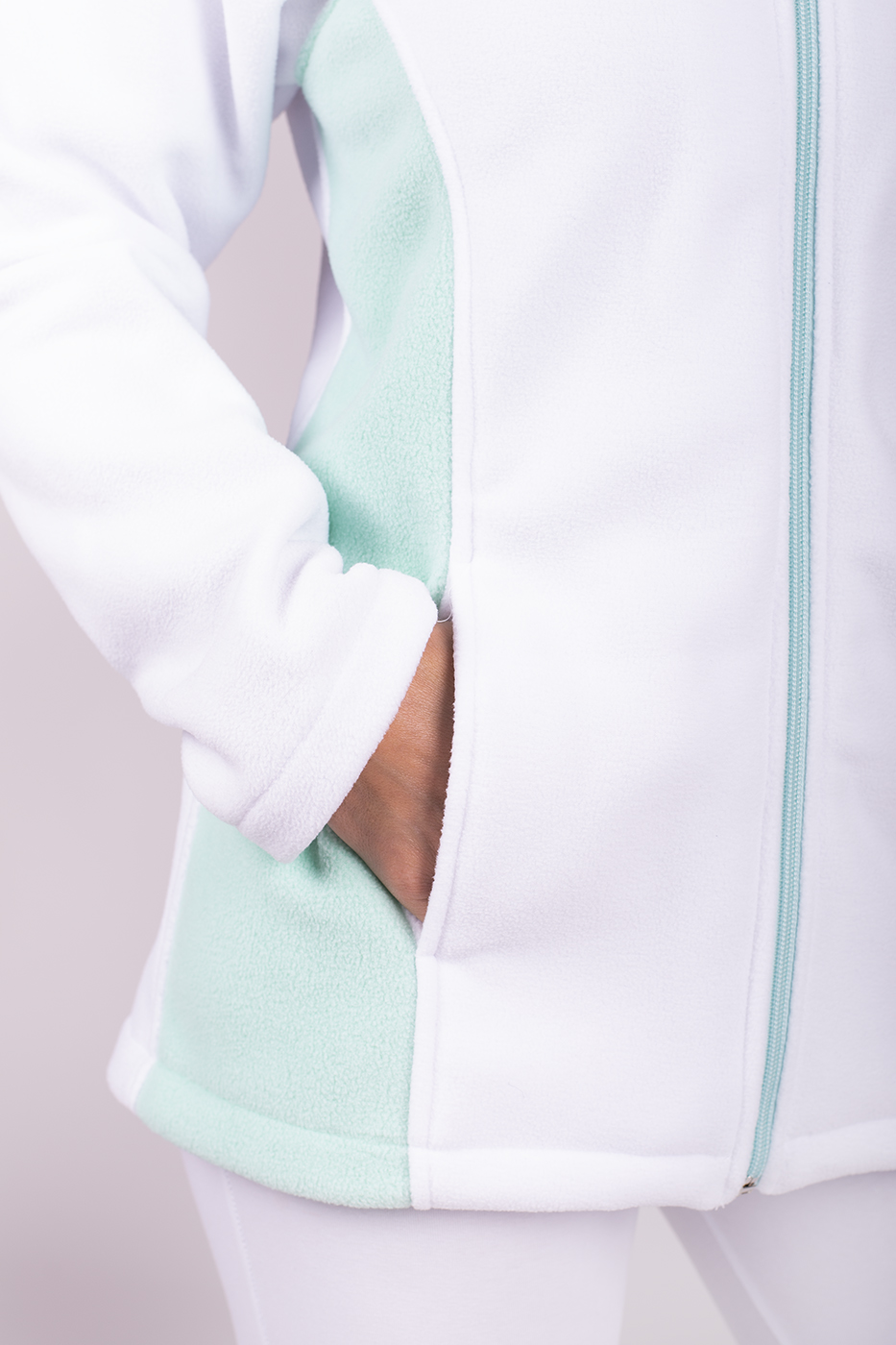 Fleecová mikina dámská K2 bílá/mentol z jemného a hřejivého materiálu, který zcela potlačí pocit chladu, snadno se pere a rychle schne.