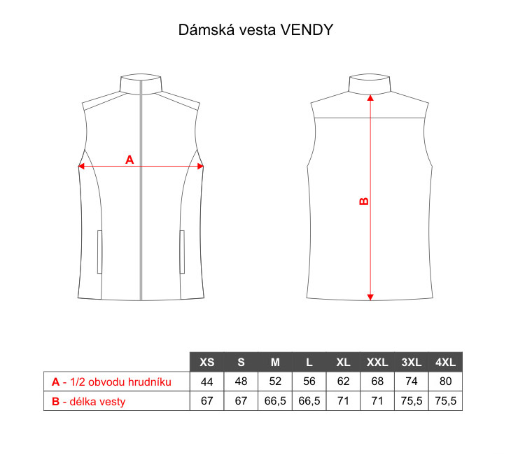 Fleecová vesta dámská Vendy v celobarevném provedení s celopropínacím zapínání na zdrhovadlo a dvěma kapsami. Materiál: 100% polyester s protižmolkovou úpravou, 280g/m2. Praní: na 30°C.