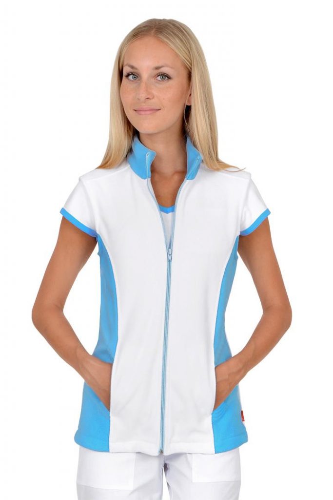 Fleecová vesta Fitnes je slušivá dámská vestička v moderní barevné kombinaci bílé a tyrkysové barvy, celopropínací zapínání na zdrhovadlo, 2 přední kapsy. Materiál: 100% polyester s protižmolkovou úpravou 280g/m2. Praní: na 30°C.