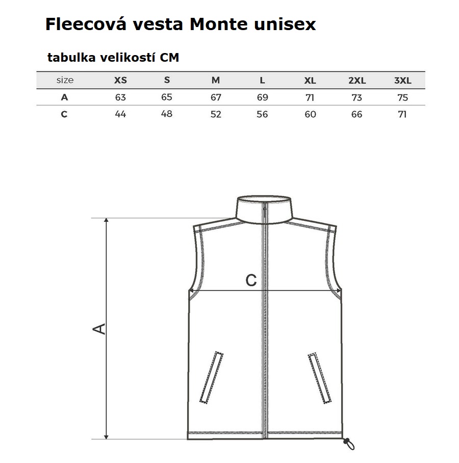 Fleecová vesta Monte unisex azurově modrá má kvalitně zpracovaný klasický střih s dvěma kapsami v přední části a v dolním lemu elastická šňůrka umožňující stažení. Materiál: 100% polyester, 280g/m2 s antipilingovou úpravou. Praní: na 40°C.