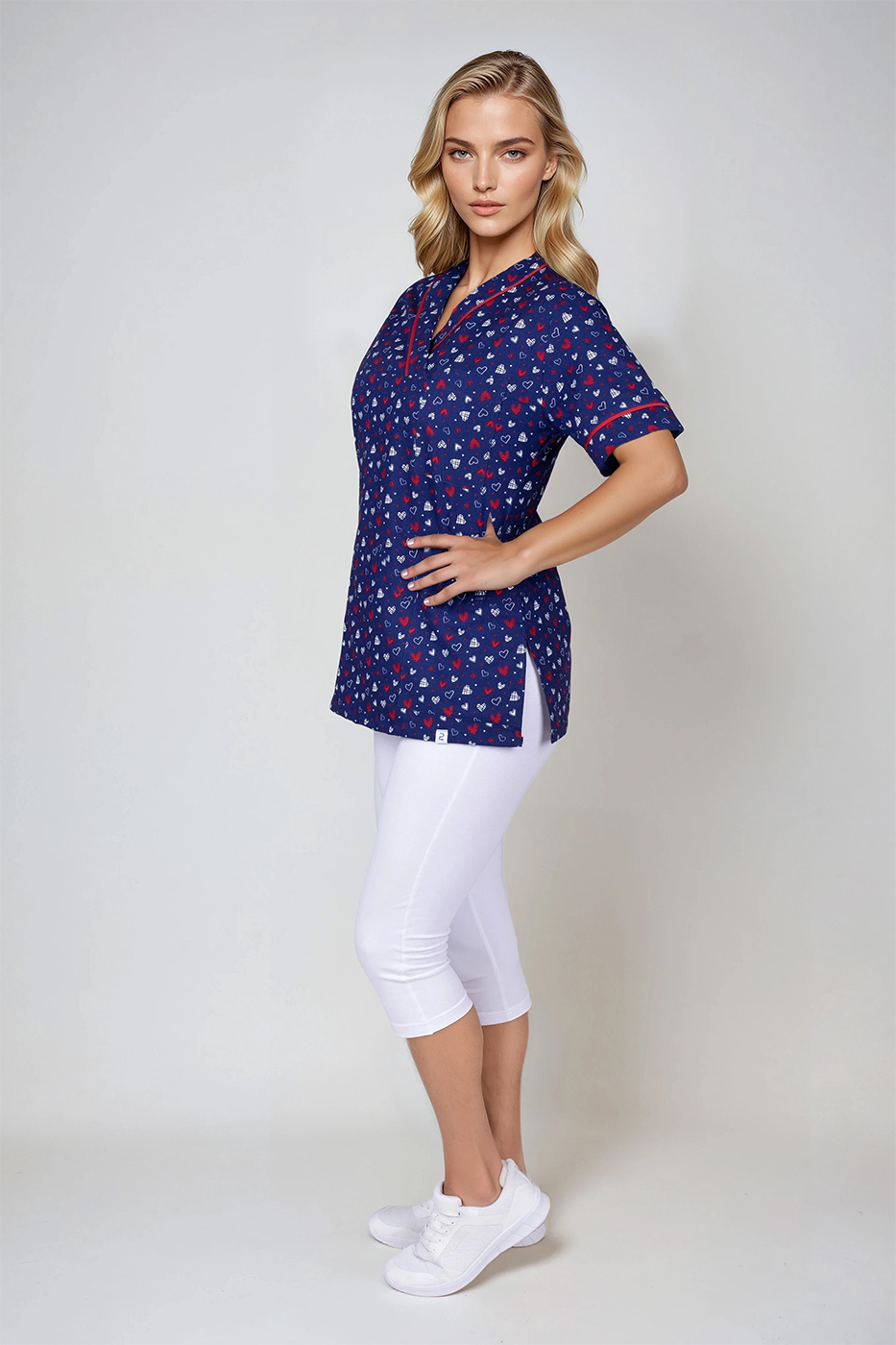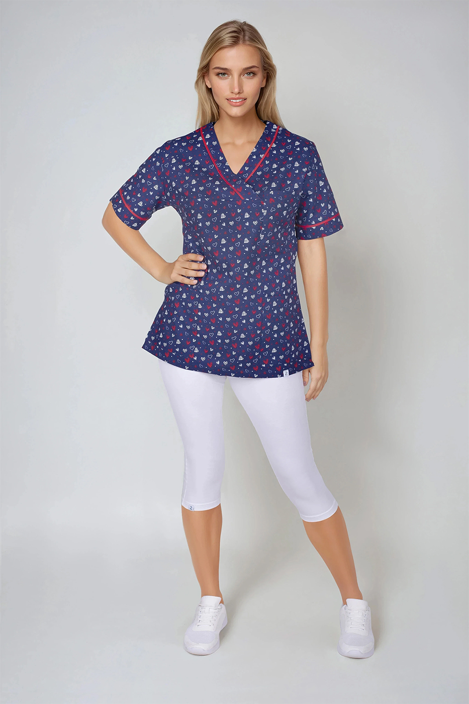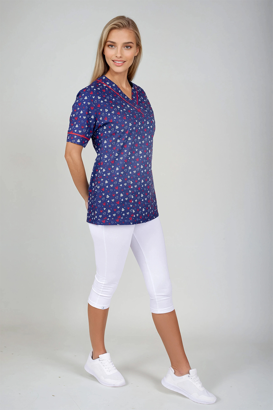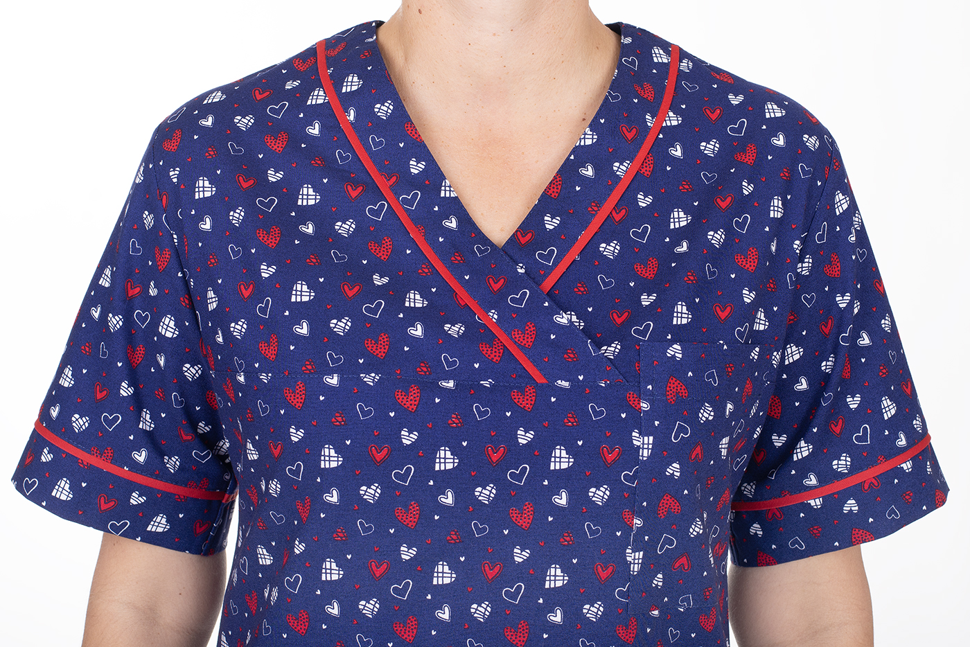 Zdravotnická pracovní halena Julia-B srdíčka modrá/červená dámská je pro vaše pohodlí vyrobena z vysrážené 100% bavlny kepr 175g/m2.