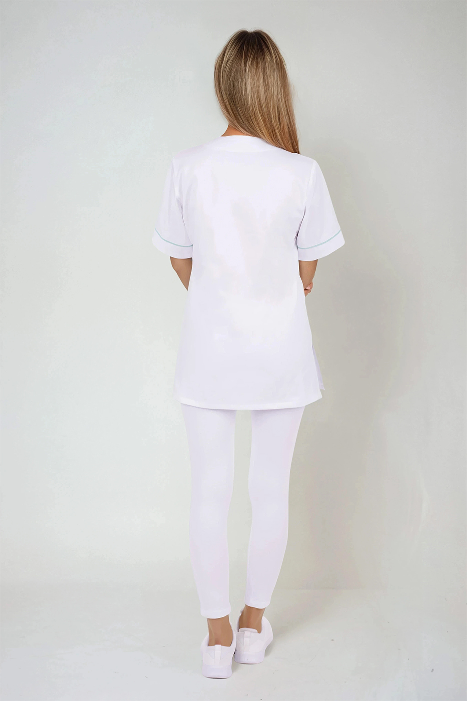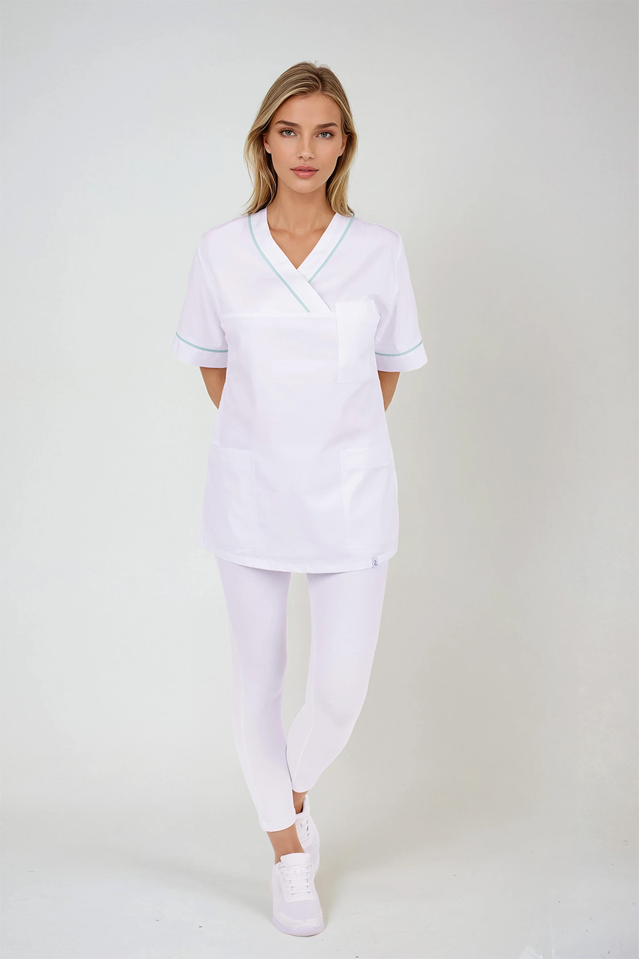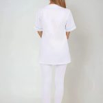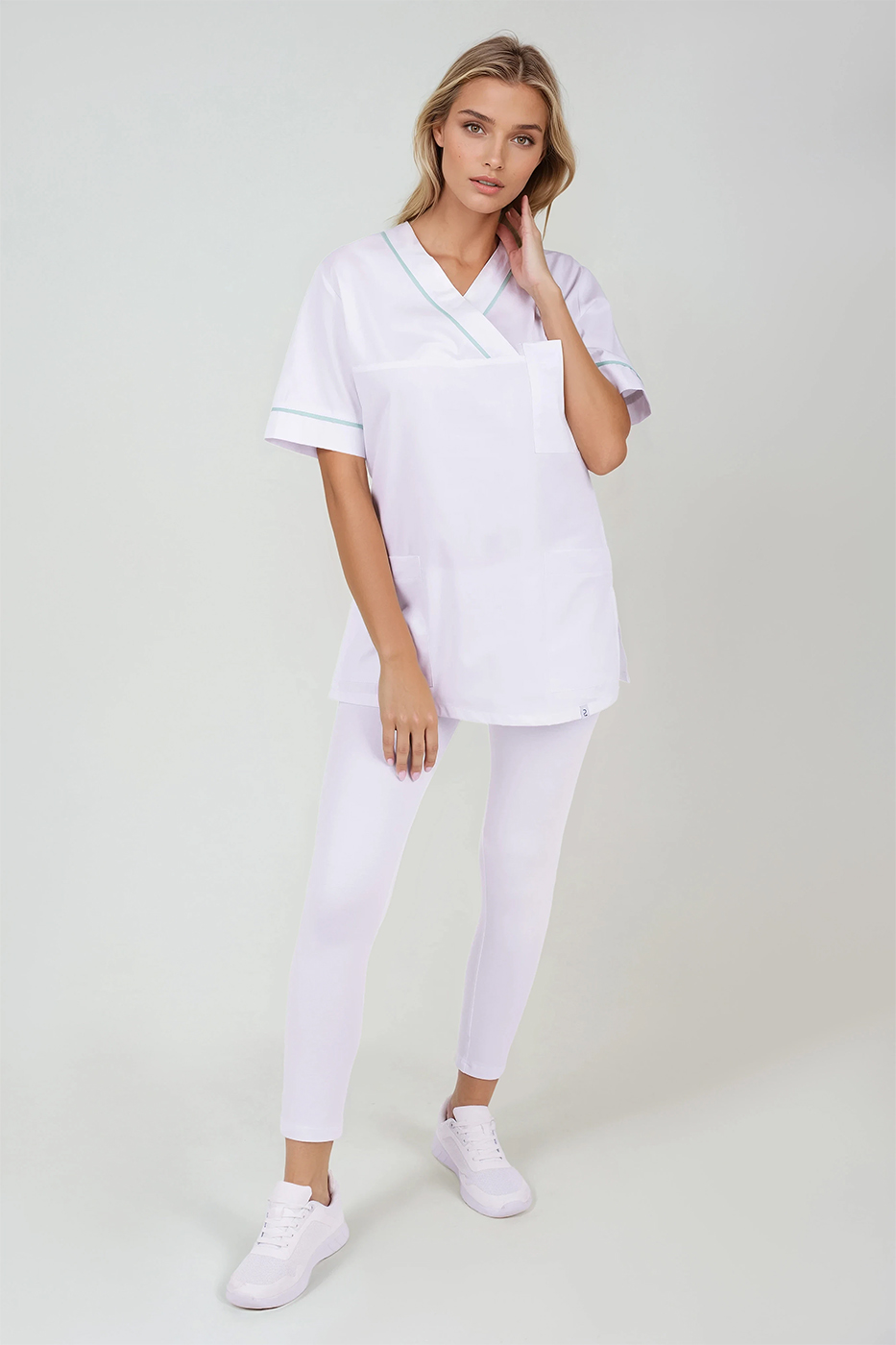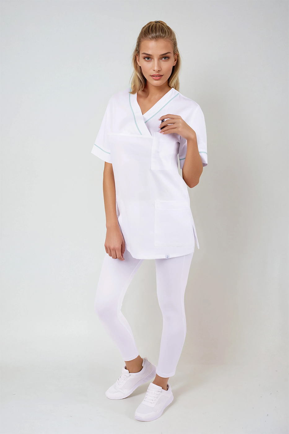 Halena zdravotnická Julia-B byla navržena s ohledem na každodenní potřeby zdravotnického personálu – od lékařek a sester až po laborantky a pečovatelky. Její mírně vypasovaný střih lichotí ženské postavě, ale zároveň neomezuje v pohybu. Díky praktickému oblékání přes hlavu je oblékání i svlékání otázkou okamžiku, což oceníte zejména ve stresových situacích nebo při střídání směn.