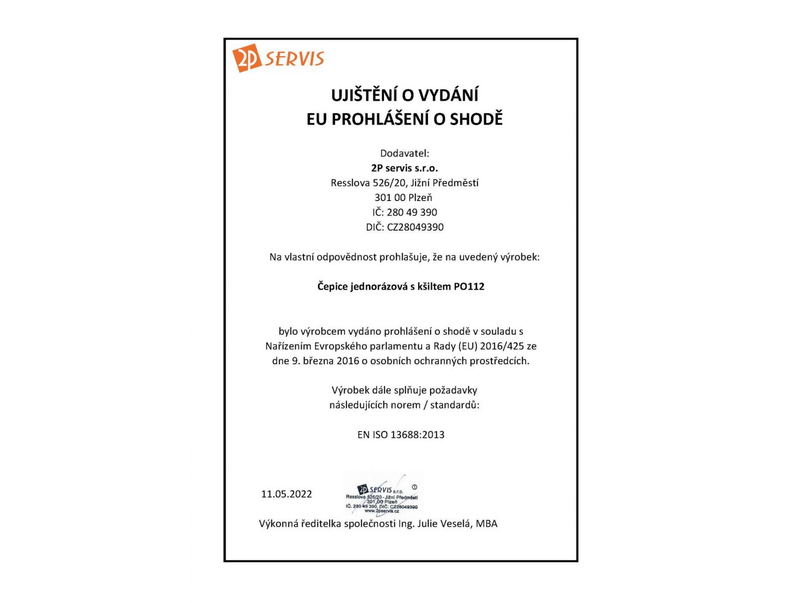 Jednorázové čepice s kšiltem PO112, obvod 50cm, síla materiálu 10g/m2. Balení: 100kusů v PE sáčku / 2000kusů v kartonu. Velikost: M obvod 50cm, L obvod 53cm.