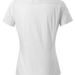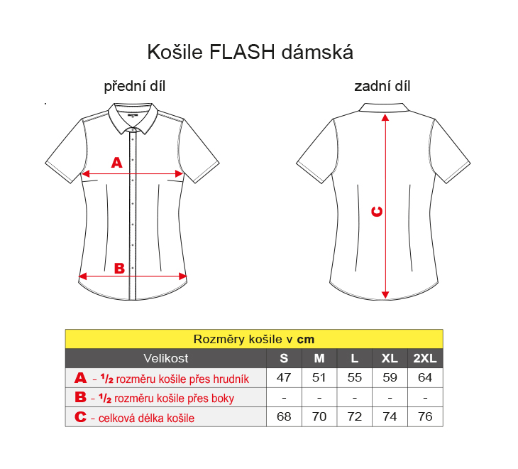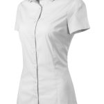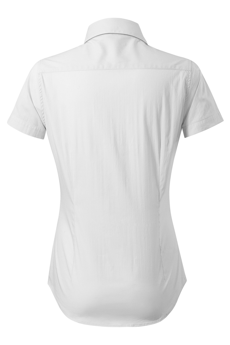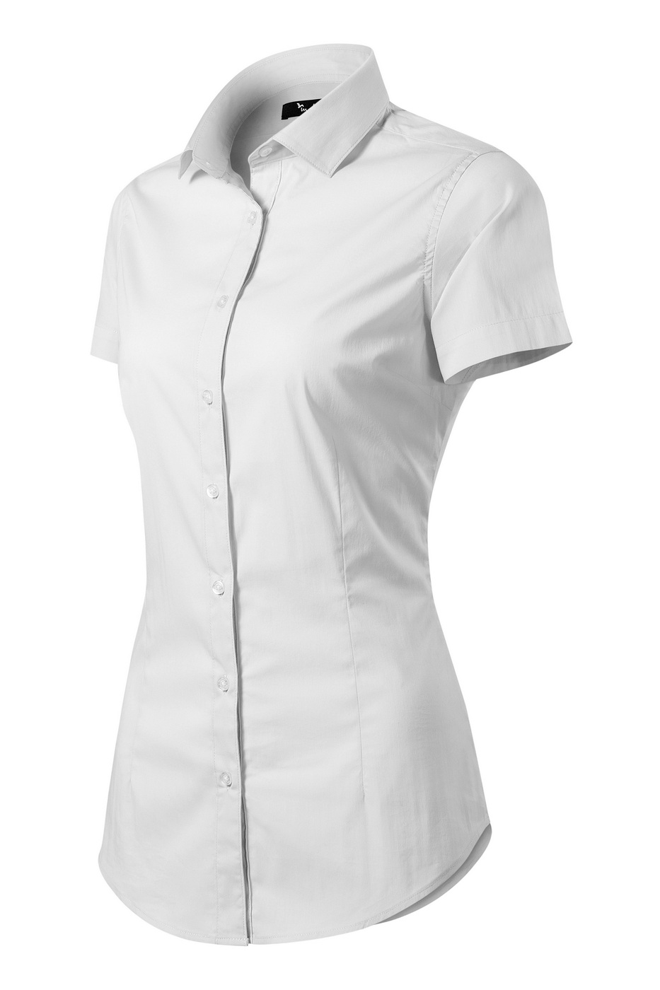 Košile dámská Flash bílá z jemného strečového materiálu, projmutý střih s bočními švy, dvojité sedlo na zadním dílu, pasové a prsní záševky, dvoudílný košilový límec, přední kraje začištěny légou, perleťové knoflíčky v barvě materiálu, tvarovaný dolní kraj. Materiál: plátnová vazba 110g/m2, 68% bavlna, 29% polyamid, 3% elastan. Praní: na 30°C.