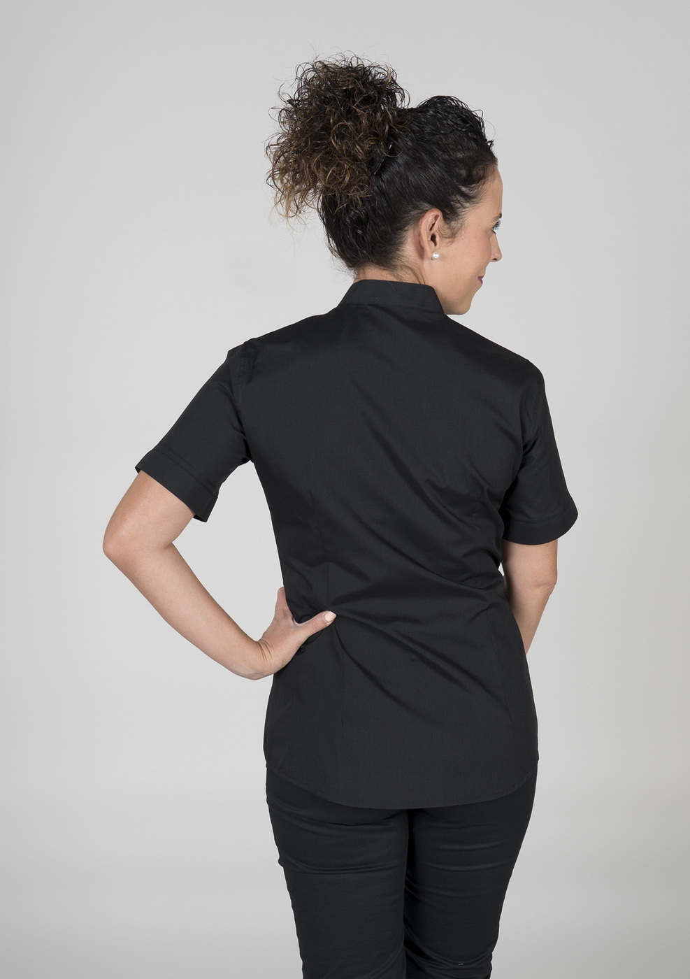 Košile dámská Grandad černá s krátkým rukávem a límečkem typu „mao“ je ideální volbou pro profesionály v pohostinství, kteří hledají uniformu, která kombinuje styl a pohodlí. Precizně vyrobená, tato košile s krátkým rukávem nabízí moderní a sofistikovaný vzhled díky chytrému límečku typu „mao“. S důrazem na funkčnost je vybavena náprsní kapsou na levé straně, která přidává praktičnost, aniž by obětovala styl. Strategicky umístěné záševky po stranách, vpředu a vzadu zajišťují lichotivý a pohodlný střih po celý pracovní den.