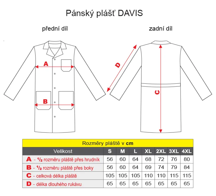 Pracovní plášť pánský ze 100% bavlny a 3 praktickými kapsami pro vaše drobnosti. Tento typ pláště je univerzální, hodí se tedy pro lékaře, zdravotníky, ale i potravinářské provozy. Materiál: vysrážená 100% bavlna, 200g/m2 s keprovou vazbou. Praní: na 60°C.