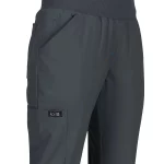 Dámské lékařské kalhoty elastické Laurie v tmavě šedé barvě, super pohodlné, středně vysoké s žebrovým pasem, lehká tkanina dobře odváděcí vlhkost, 3 přední kapsy včetně kapsičky na mince, boční kapsa a 2 zadní kapsy. Pokud preferujete mít kalhoty více upnuté, zvažte volbu menší velikosti. Materiál: strečové mikrovlákno 95% polyester + 5% spandex. Žebrový pás: 95% polyester + 5% spandex. Praní: na 30°C.