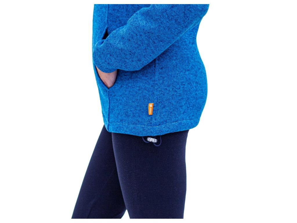 Dámská mikina K1 ze svetroviného melíru má praktické celopropínací zapínání na zdrhovadlo a 2 kapsy vpředu. Materiál: 100% polyester 311g/m2, svetrovinový melír. Svetrovina je příjemný a měkký materiál. Z rubové strany má krátce střižený počesaný chloupek podobný microfleecu, lícová strana je pletená hladce, materiál je lehce pružný. Praní: na 40°C, prát a sušit z rubu.