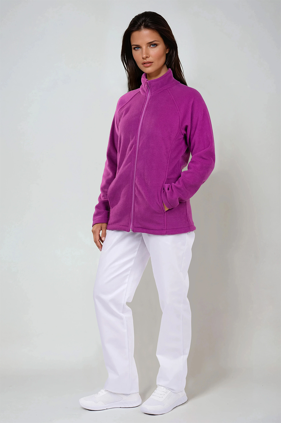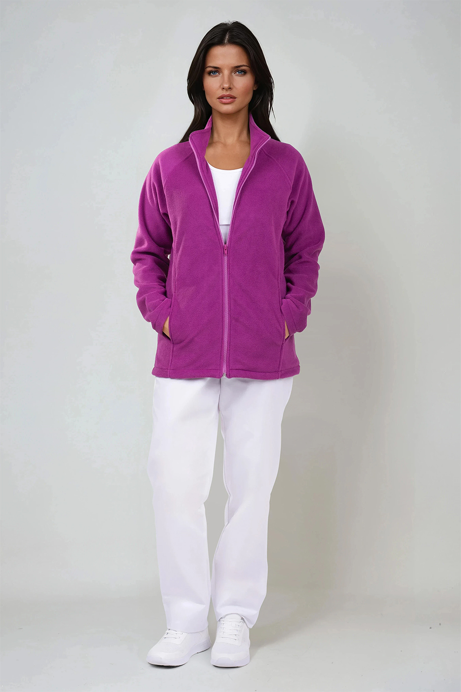 Mikina fleecová dámská K1 s dlouhým rukávem, celopropínacím zapínáním na zdrhovadlo a v přední části 2 praktické kapsy.