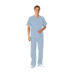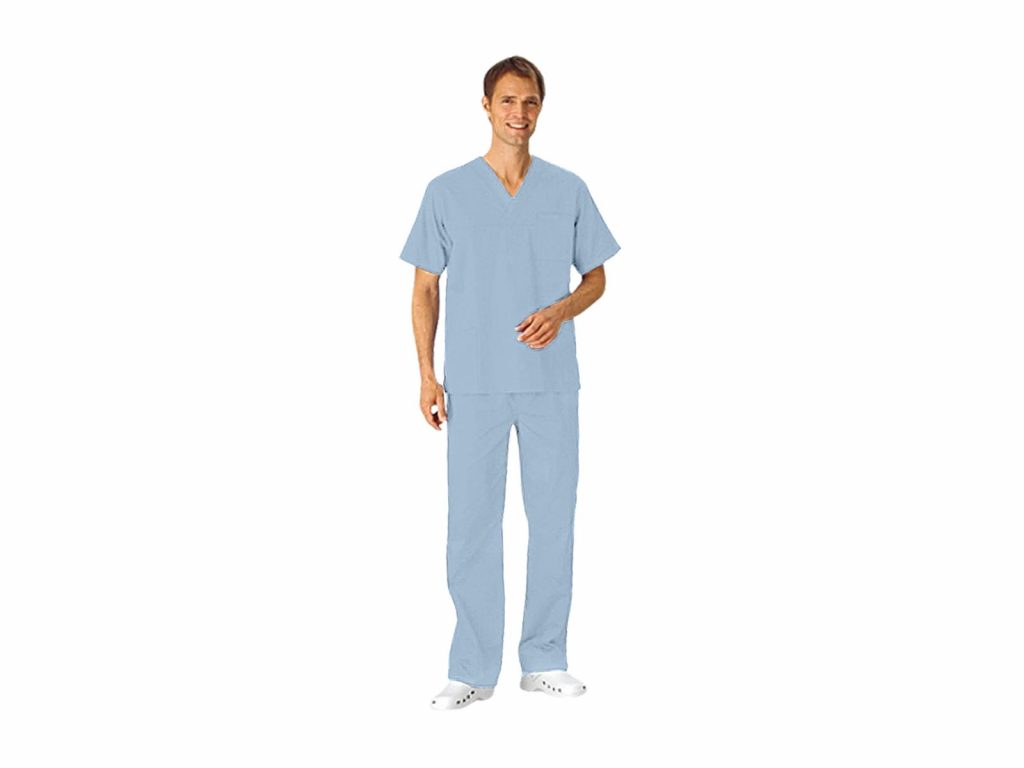 Operační komplet pro lékaře, zdravotníky, ale i veterináře vyrábíme standardně s halenou Unima se 2 kapsami, kalhoty v pase na gumu bez kapes, po dohodě s obchodním zástupcem lze vyrobit vč. kapes. Materiál: 100% vysrážená bavlna s chlórostálou úpravou, plátnová vazba, 145g/m2. Praní: na 95°C.