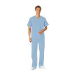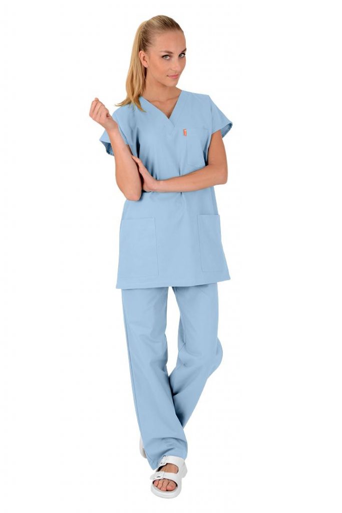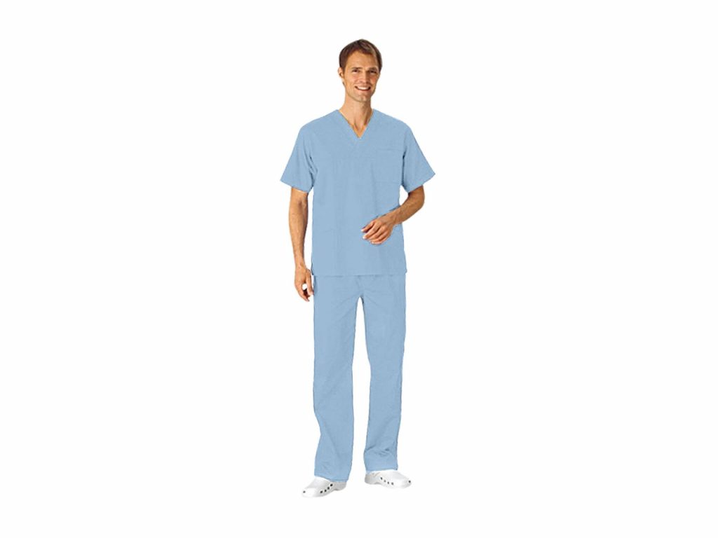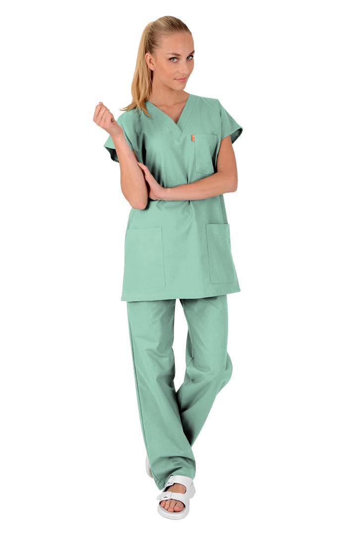 Operační komplet pro lékaře, zdravotníky, ale i veterináře vyrábíme standardně s halenou Unima se 2 kapsami, kalhoty v pase na gumu bez kapes, po dohodě s obchodním zástupcem lze vyrobit vč. kapes. Materiál: 100% vysrážená a stálobarevná bavlna, plátnová vazba, 145g/m2. Praní: na 60°C.