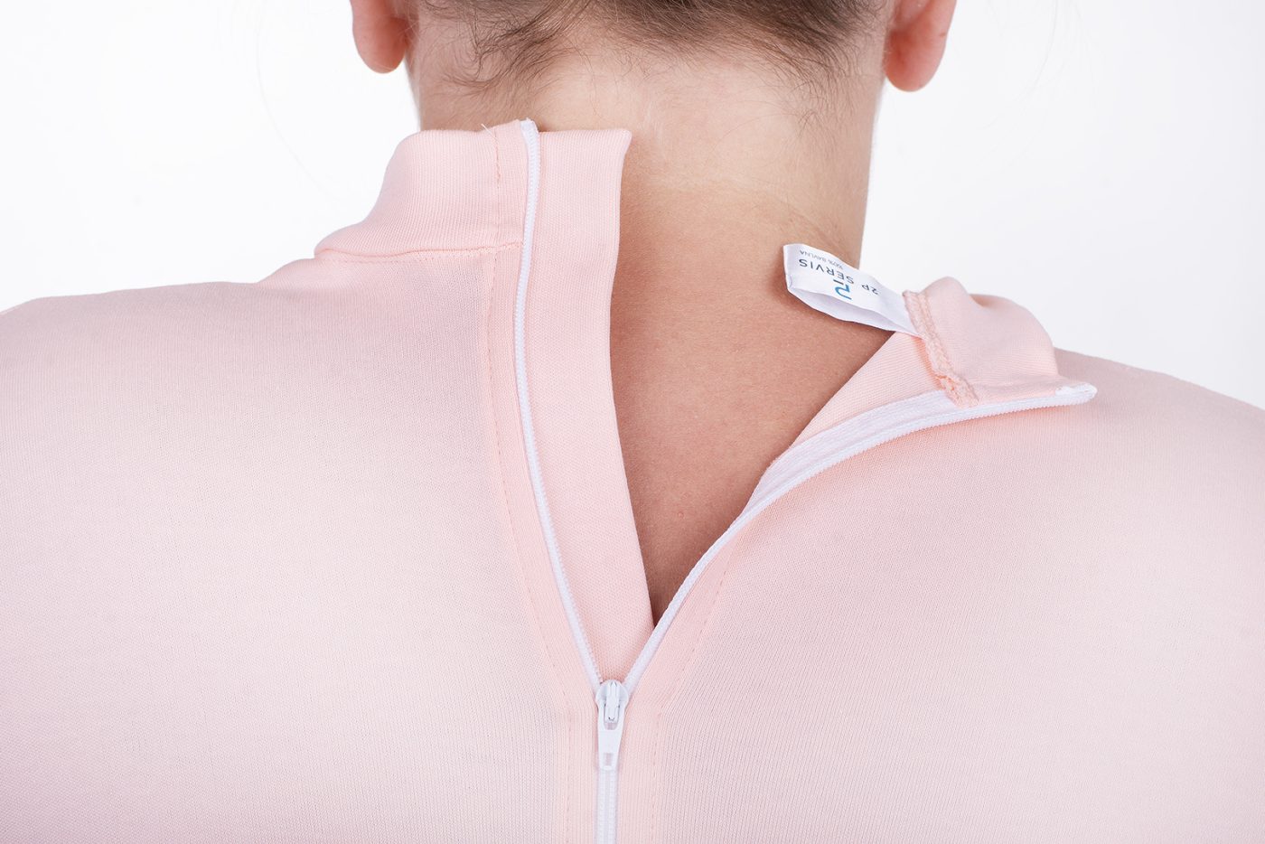 Overal pro inkontinentní pacienty Inko Long meruňka má jeden zip na zádech s krycí vnitřní légou vedoucí od krku pod pas. Druhý zip bez krycí vnitřní légy celopropínací vnitřní část nohavic. Bezpečnostní pojistka jezdce zipu nohavic proti rozepnutí. Materiál: 100% bavlna úplet. Praní: na 95°C.