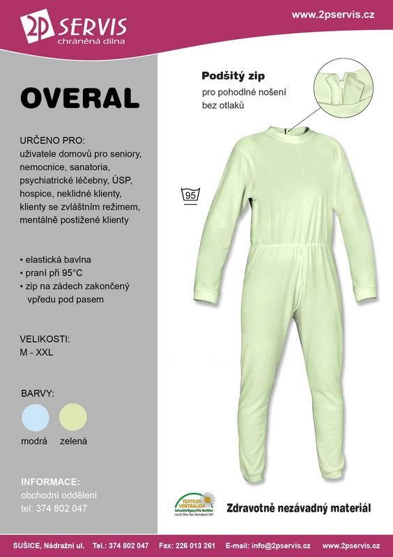 Overal pro neklidné pacienty a klienty najde své uplatnění ve zdravotnických a pečovatelských zařízeních, a stejně tak i domácím prostředí. Prostě všude, kde je pečováno o neklidné pacienty. Overal se zapíná praktickým a podšitým zipem, který vede ze zadní strany rozkrokem do přední části. Materiál: zdravotně nezávadná 100% bavlna s možností praní na 95°C.