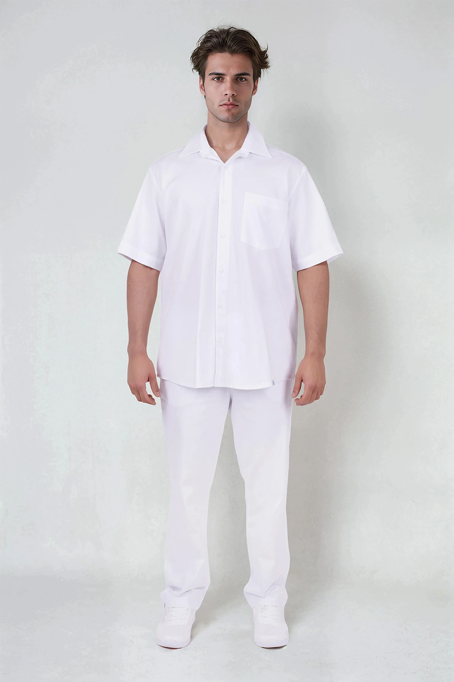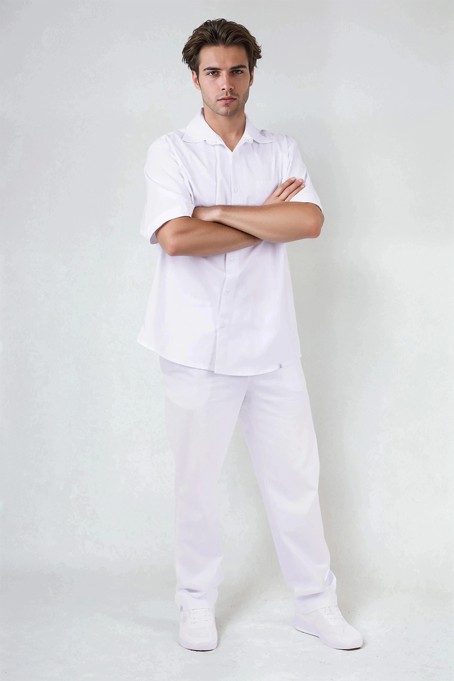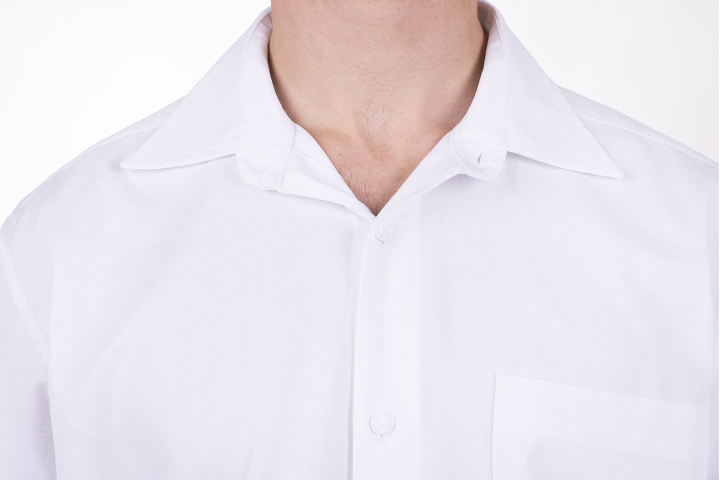 Pánská bílá košile Lucas má rovný střih, který poskytuje volnost pohybu a pohodlí po celý den. Dvoudílný límec dodává košili klasický vzhled, zatímco krátké rukávy jsou ideální volbou pro teplejší dny nebo pro práci v prostředí s vyšší teplotou. Zadní část je členěna dvojitým sedlem, což nejen zlepšuje vzhled, ale i zvyšuje komfort nošení.