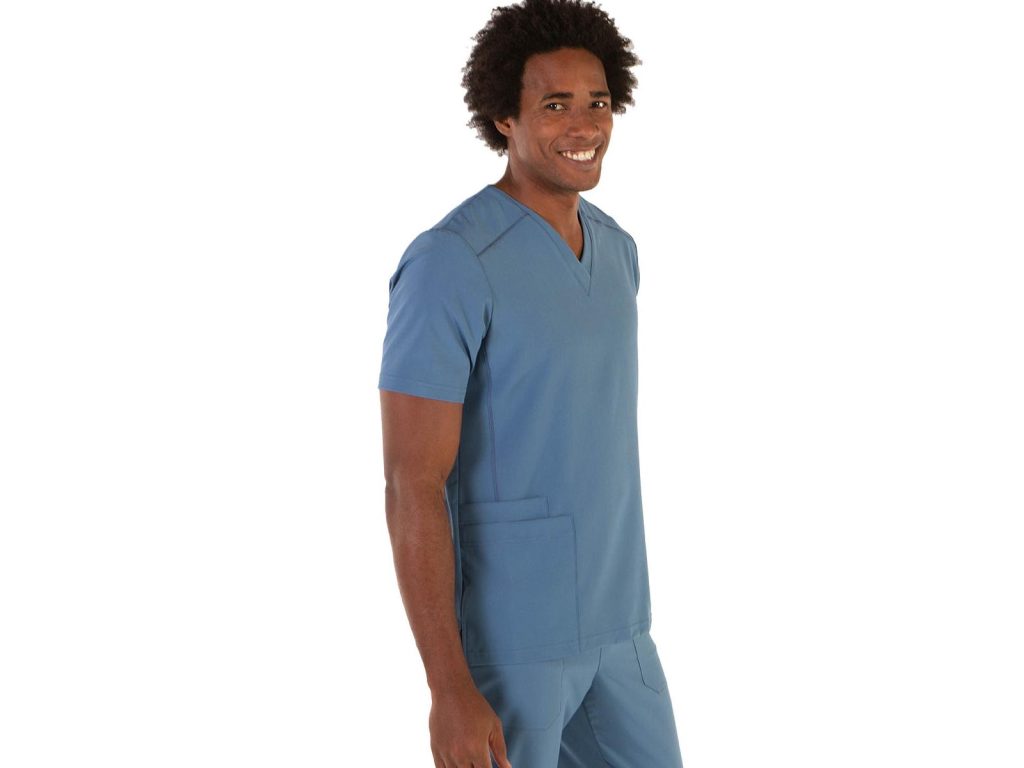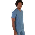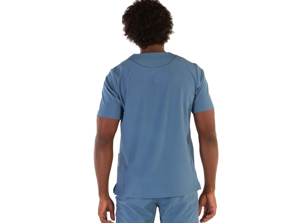 Pracovní halena pánská Tadeo šedomodrá mikrovlákno s krátkými rukávy a výstřihem do V, 3 kapsy v přední části – 2 na pravé straně, halena je ušita z revoluční tkaniny s antibakteriální úpravou Silvadur, obsahující ionty stříbra, které poskytují ochranu a svěžest. Tkanina má elastickou vlastnost 360°, která umožňuje roztažnost ve všech směrech což je důležité pro snadný pohyb a pohodlí. Materiál: mikrovlákno 95% PES 5% elastan 170g/m2. Praní: na 30°C.