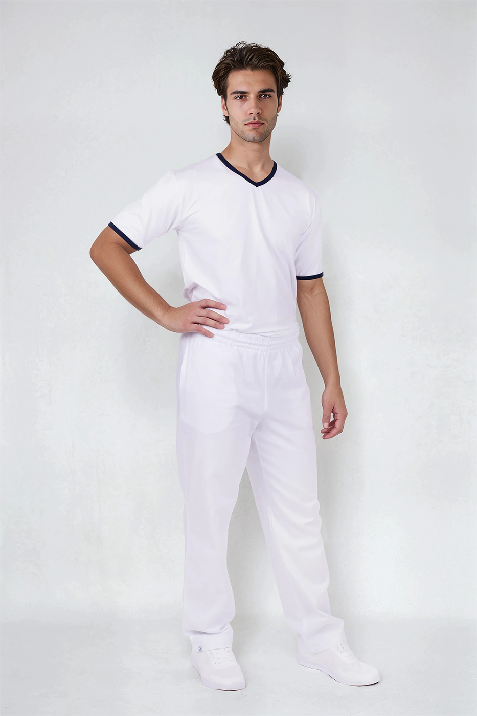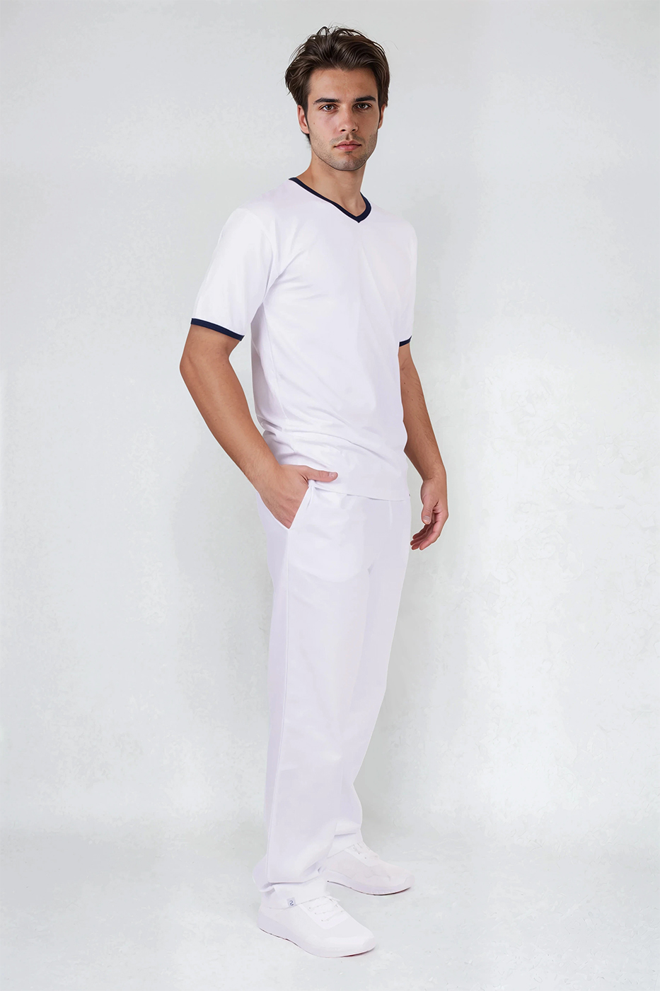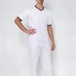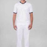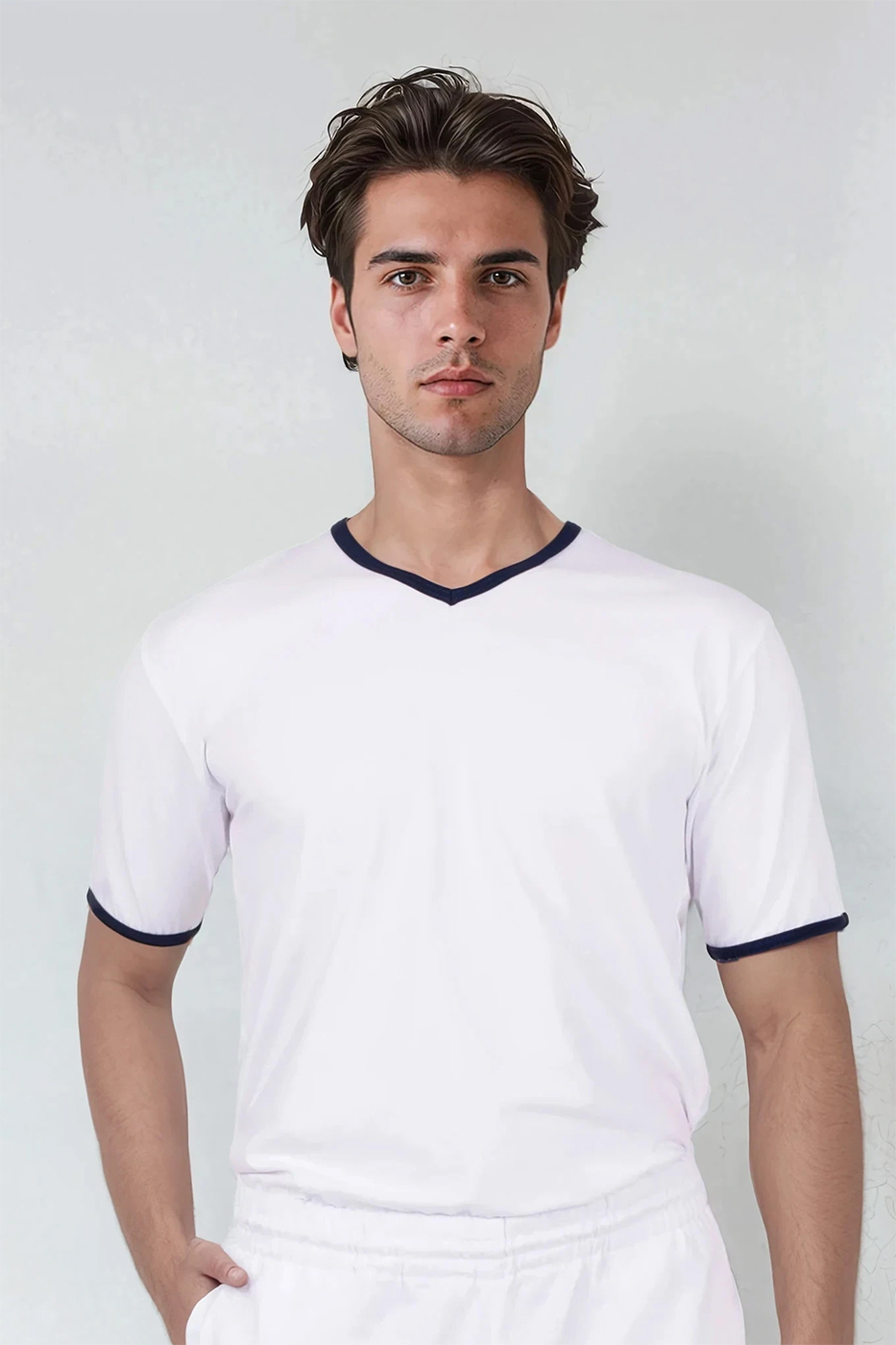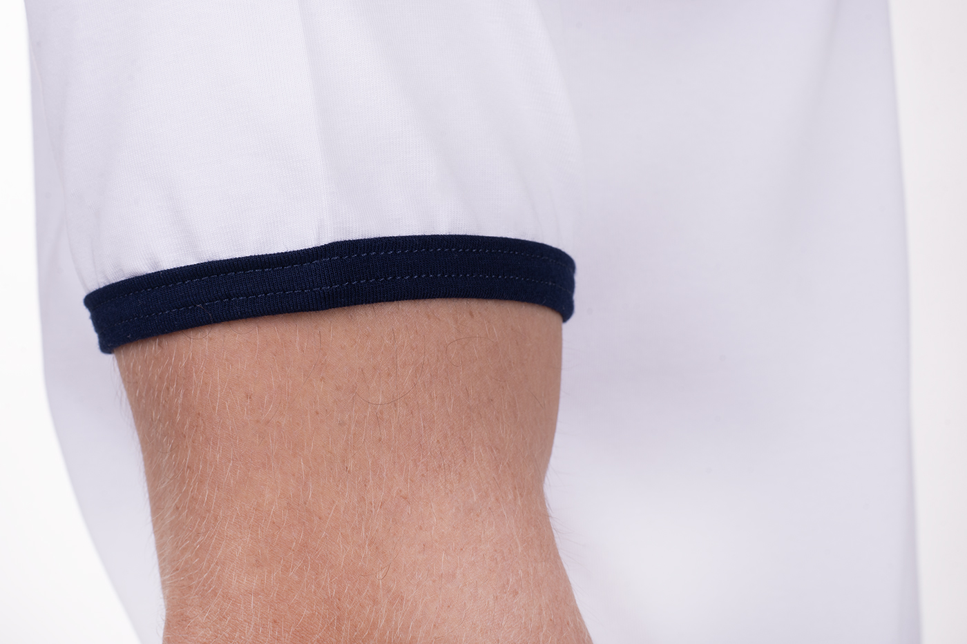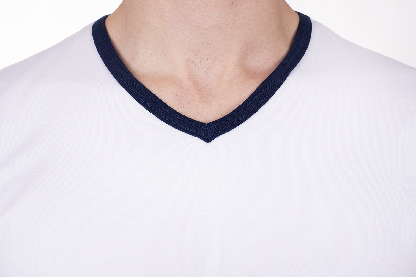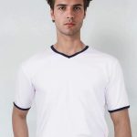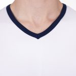 Pánské tričko Jakob má výstřih do V pro pohodlné oblékání a zdobení modrým proužkem ve výstřihu a na krátkých rukávech. Triko šijeme z kvalitního materiálu s přídavkem elastanu, jedná se tedy o kvalitní český výrobek.