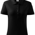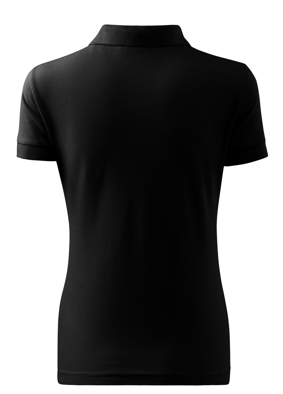 Polokošile dámská černá pique má elegantní, projmutý střih, prodlouženou úzkou légu s 5 knoflíčky, límeček i lemy rukávů jsou ze žebrové pleteniny, tkaná etiketa. Praní na 40°C. Materiál: 100% bavlna, 170g/m2.