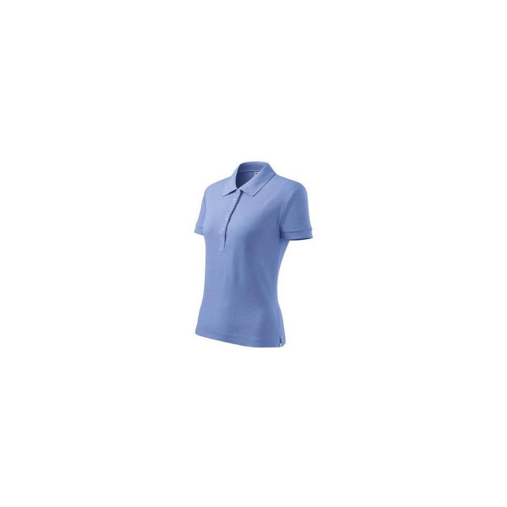 Polokošile dámská nebesky modrá pique má elegantní, projmutý střih, prodlouženou úzkou légu s 5 knoflíčky, límeček i lemy rukávů jsou ze žebrové pleteniny, tkaná etiketa. Praní na 40°C. Materiál: 100% bavlna, 170g/m2.